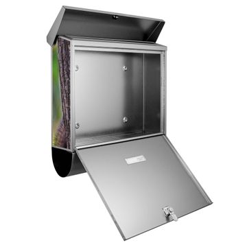 Der Briefkasten besteht aus Edelstahl, einem hochwertigen Material das rostfrei und äußerst unempfindlich gegenüber Witterungseinflüssen ist. Das Motiv besteht aus einer wetter- und UV-festen Folie, die Ihren Briefkasten zusätzlich vor Kratzern schützt. Der Postkasten ist je nach Auswahl 38 x 39 x 12 CM oder 38 x 31,5 x 12 cm (BxHxT) groß. Der Briefeinwurf ist 33,2cm x 3,1cm, Format DIN C4. Der Briefkasten wird mit Montagematerial und zwei Schlüsseln geliefert.