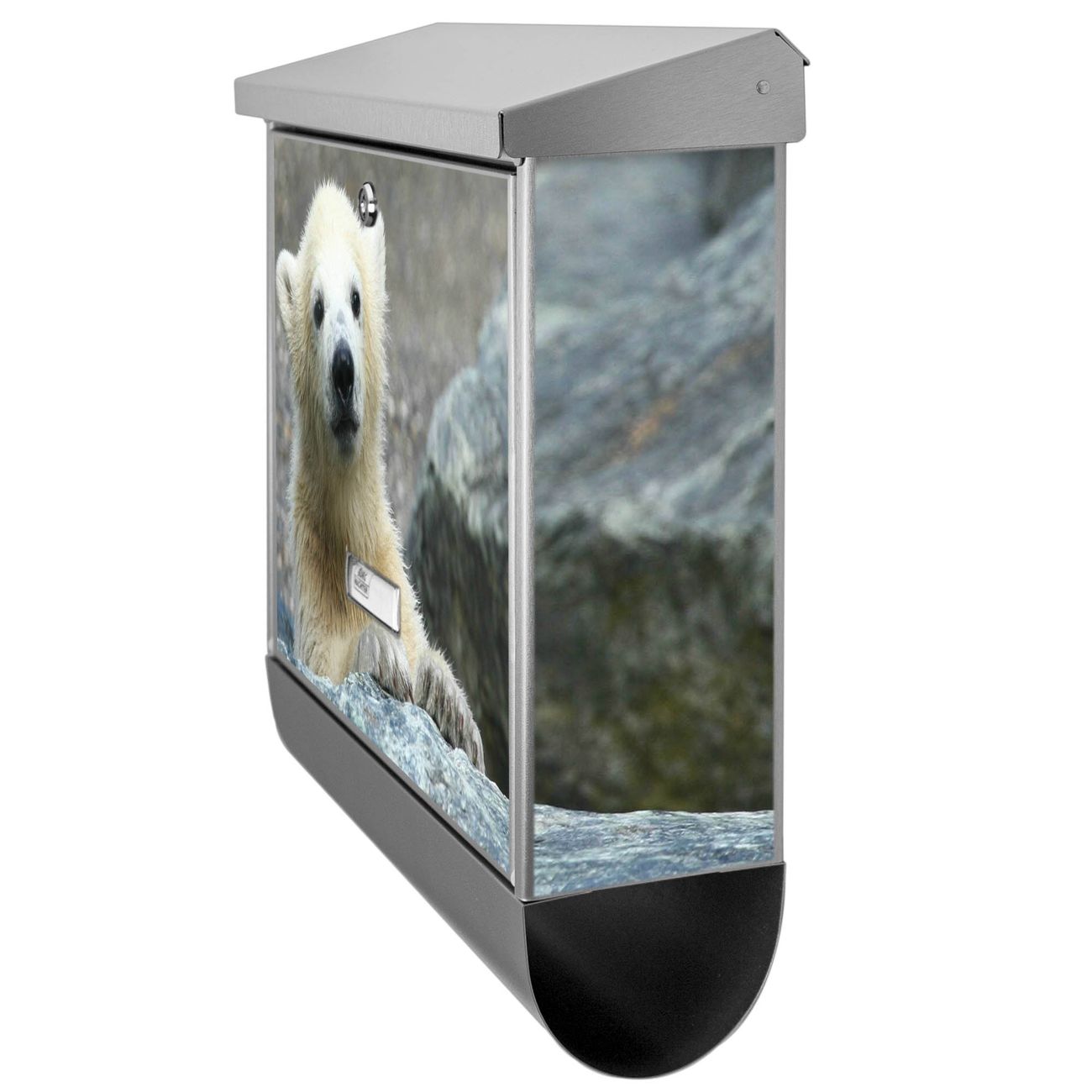 Der Eisbär Baby Motivbriefkasten hat ein sehr ansprechendes und zeitloses Design. Unsere Motivpalette hält jede Menge Varianten bereit, ob klassisch, modern, verspielt oder witzig - für jeden haben wir das passende Motiv parat. Der Briefkasten mit Zeitungsfach ist Ihr Aushängeschild, heben Sie Sich ab ohne auf Funktionalität zu verzichten.