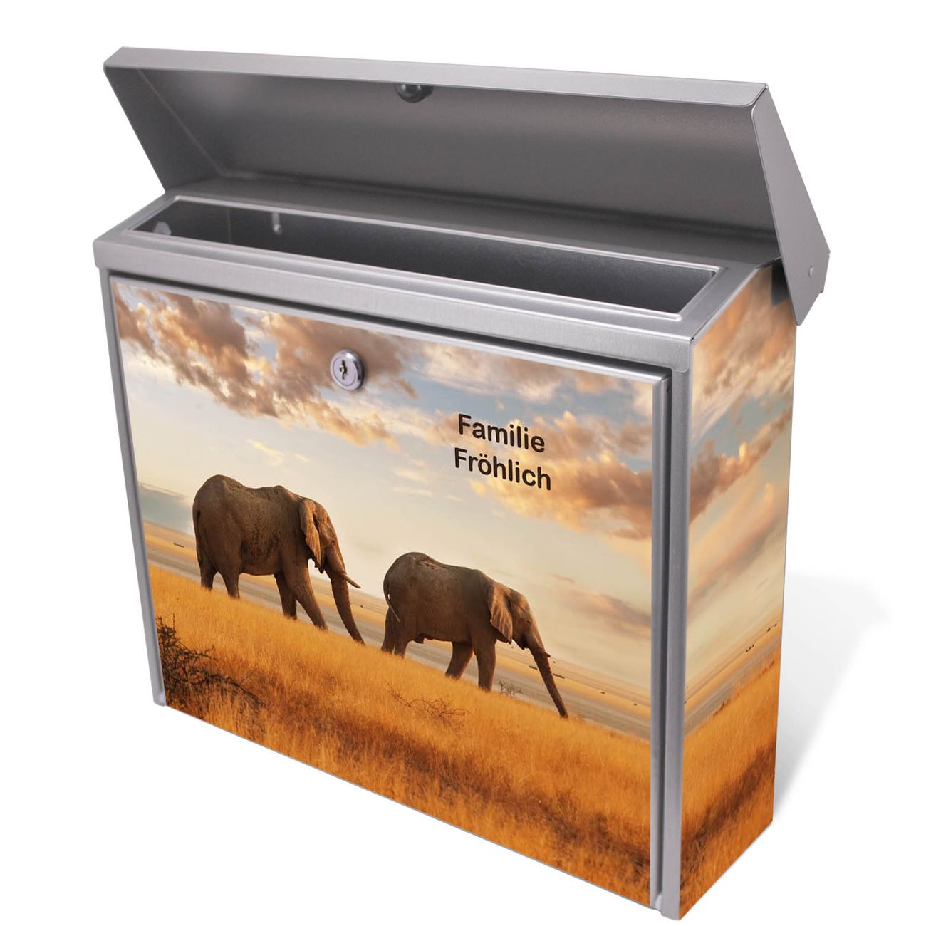 Der Postkasten mit Elefanten Motiv hat ein sehr ansprechendes und zeitloses Design. Unsere Motivpalette hält jede Menge Varianten bereit, ob klassisch, modern, verspielt oder witzig - für jeden haben wir das passende Motiv parat. Der Briefkasten ist das Aushängeschild Ihres Hauses.