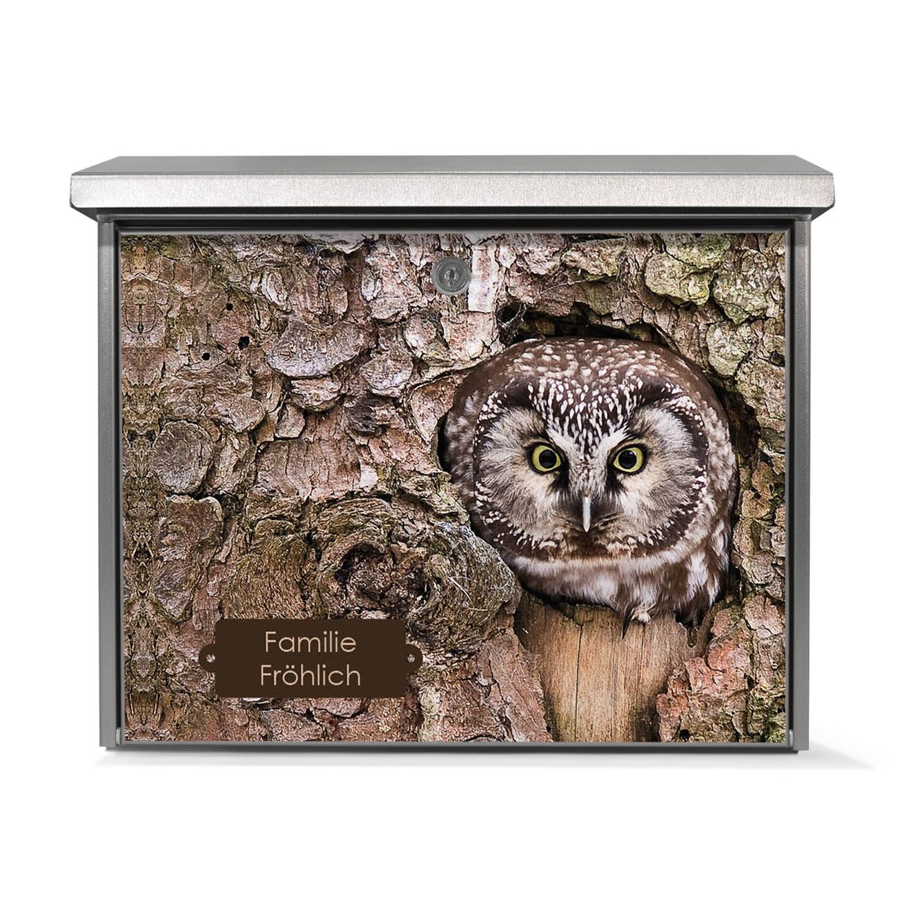 Der Postkasten mit Eule Motiv hat ein sehr ansprechendes und zeitloses Design. Unsere Motivpalette hält jede Menge Varianten bereit, ob klassisch, modern, verspielt oder witzig - für jeden haben wir das passende Motiv parat. Der Briefkasten ist das Aushängeschild Ihres Hauses.