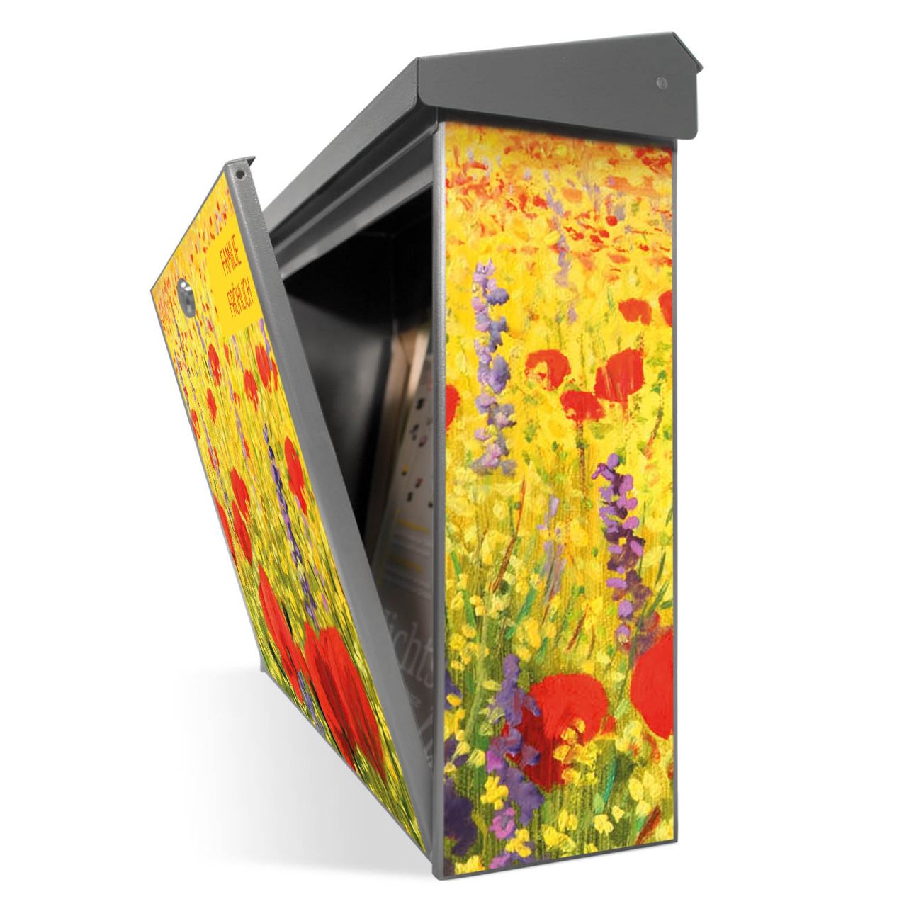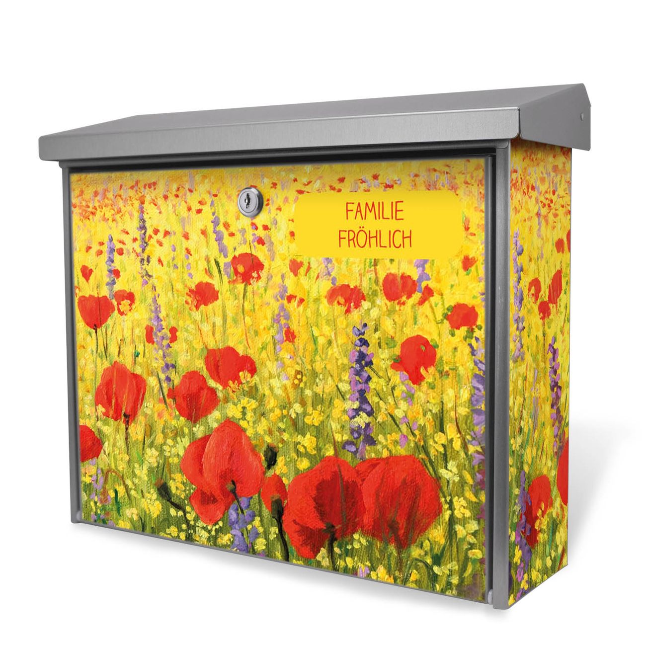 Der Postkasten mit Feld Mit Mohnblumen Motiv hat ein sehr ansprechendes und zeitloses Design. Unsere Motivpalette hält jede Menge Varianten bereit, ob klassisch, modern, verspielt oder witzig - für jeden haben wir das passende Motiv parat. Der Briefkasten ist das Aushängeschild Ihres Hauses.