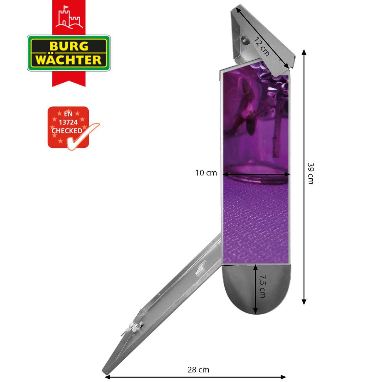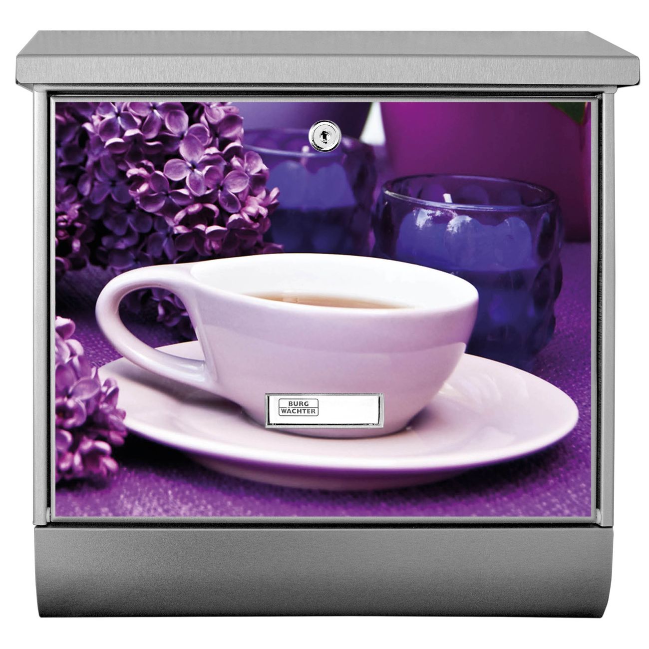 Der BURG-WÄCHTER Edelstahl Briefkasten mit Motiv Flieder und Zeitungsrolle bietet Ihnen mit seinem Fassungsvermögen genügend Platz auch für große A4 Sendungen und Zeitschriften. Das integrierte Regendach schützt Ihre Post vor dem Eindringen von Regen.