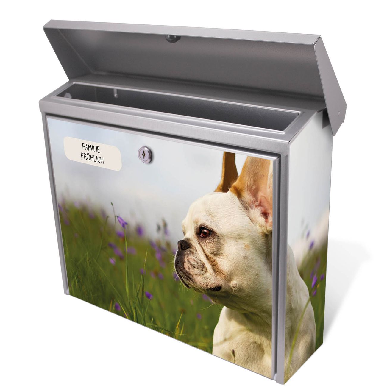 Der Postkasten mit Französische Bulldogge Motiv hat ein sehr ansprechendes und zeitloses Design. Unsere Motivpalette hält jede Menge Varianten bereit, ob klassisch, modern, verspielt oder witzig - für jeden haben wir das passende Motiv parat. Der Briefkasten ist das Aushängeschild Ihres Hauses.