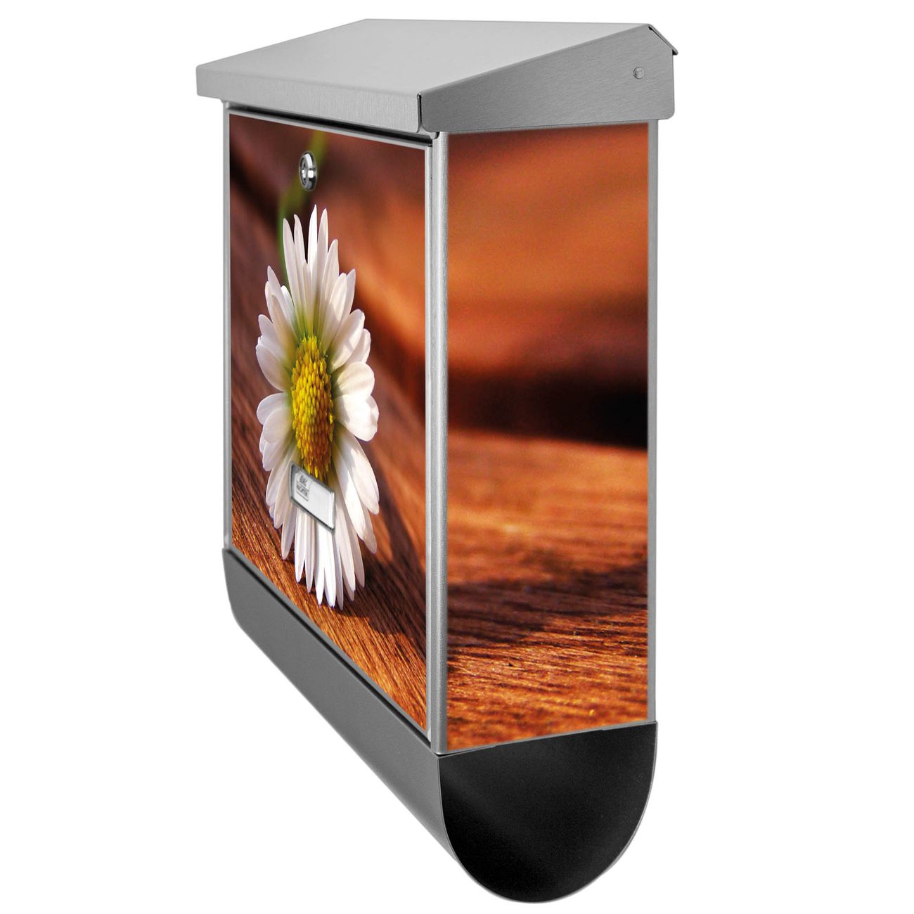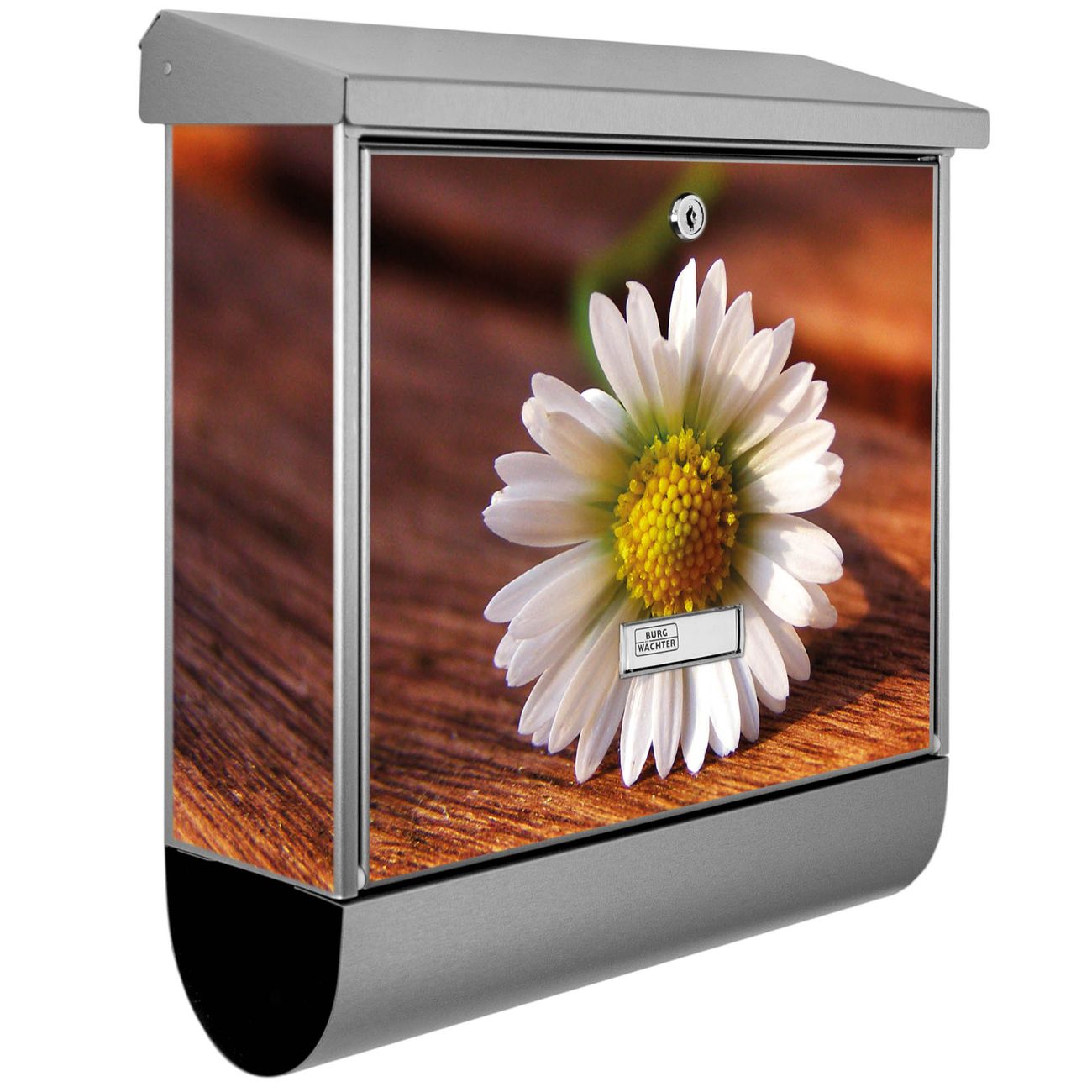 Der Gänseblümchen Motivbriefkasten hat ein sehr ansprechendes und zeitloses Design. Unsere Motivpalette hält jede Menge Varianten bereit, ob klassisch, modern, verspielt oder witzig - für jeden haben wir das passende Motiv parat. Der Briefkasten mit Zeitungsfach ist Ihr Aushängeschild, heben Sie Sich ab ohne auf Funktionalität zu verzichten.