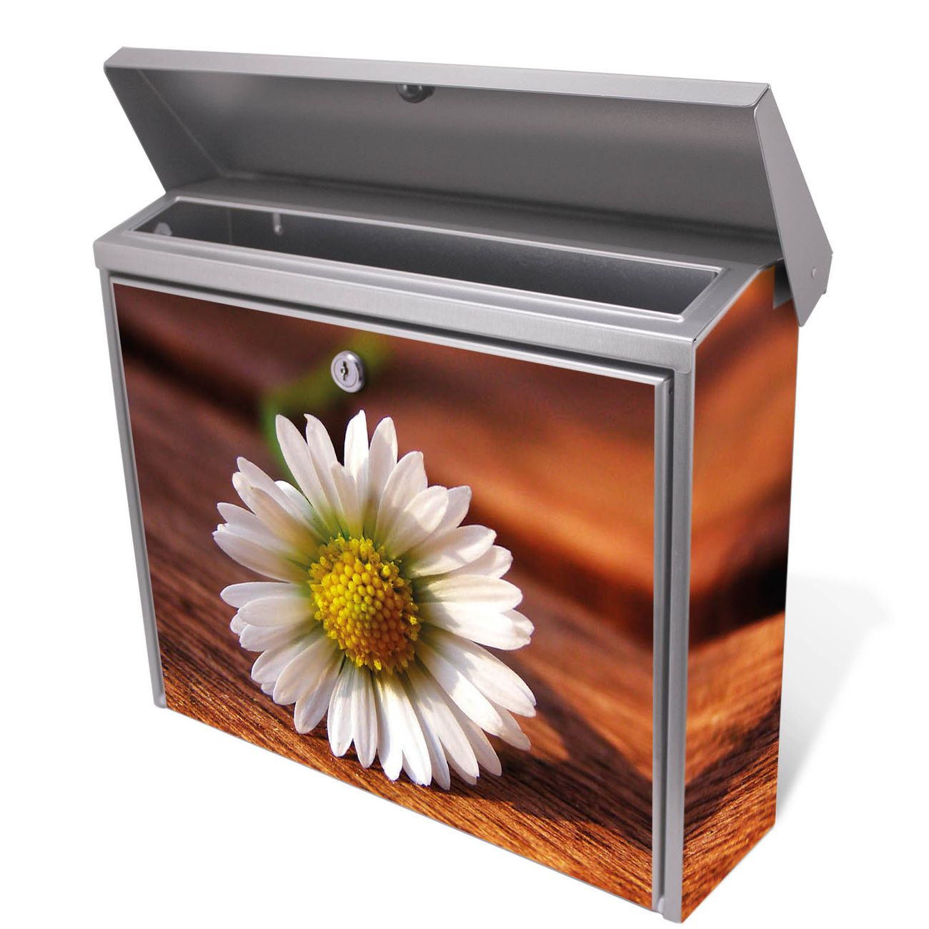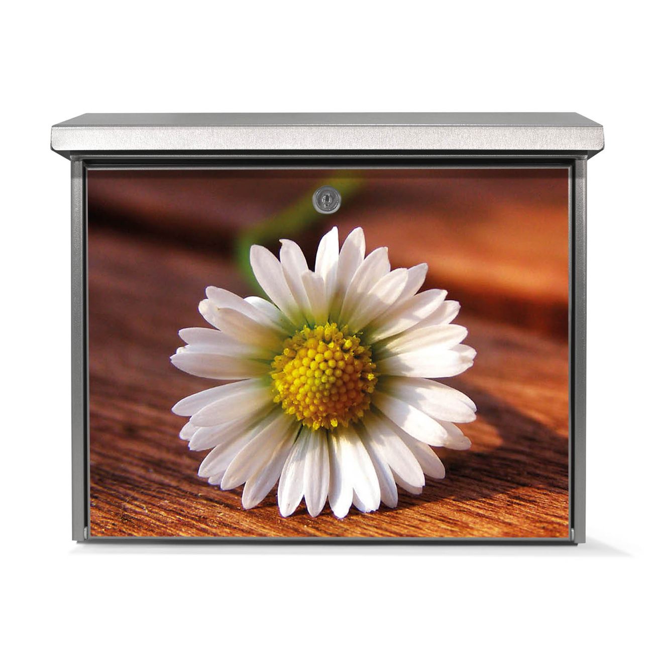 Der Postkasten mit Gänseblümchen Motiv hat ein sehr ansprechendes und zeitloses Design. Unsere Motivpalette hält jede Menge Varianten bereit, ob klassisch, modern, verspielt oder witzig - für jeden haben wir das passende Motiv parat. Der Briefkasten ist das Aushängeschild Ihres Hauses.