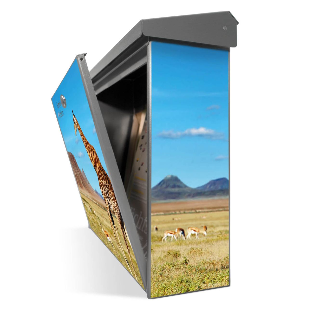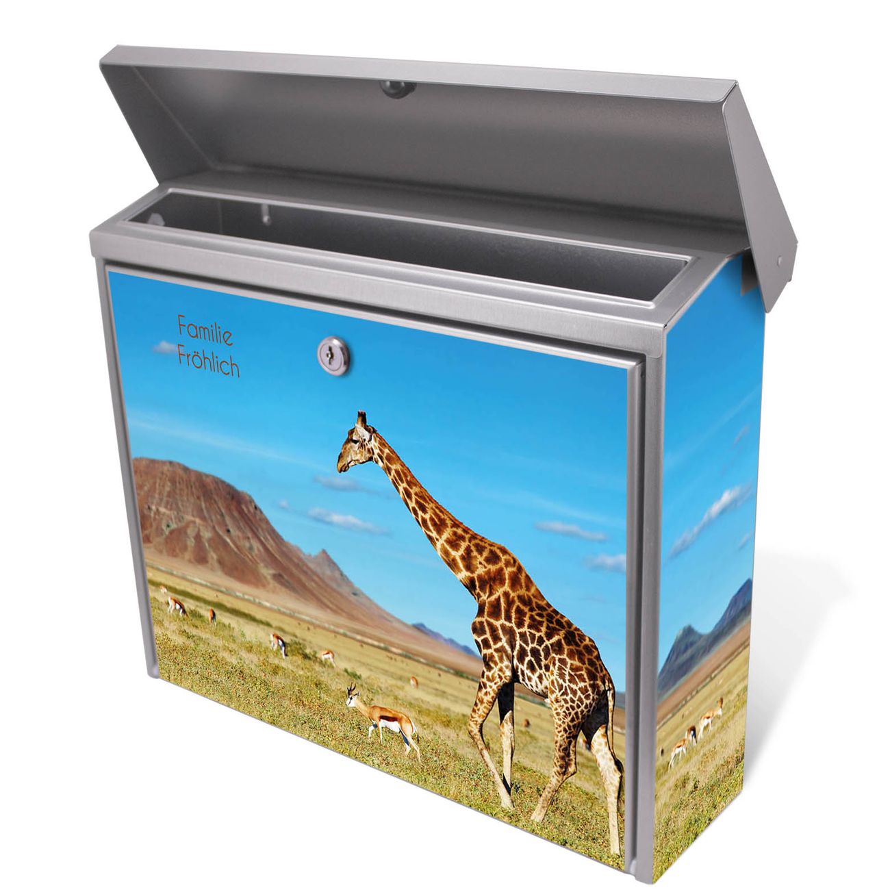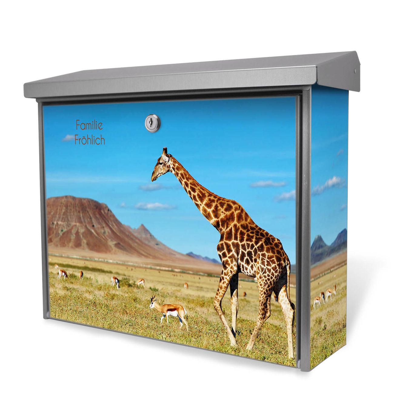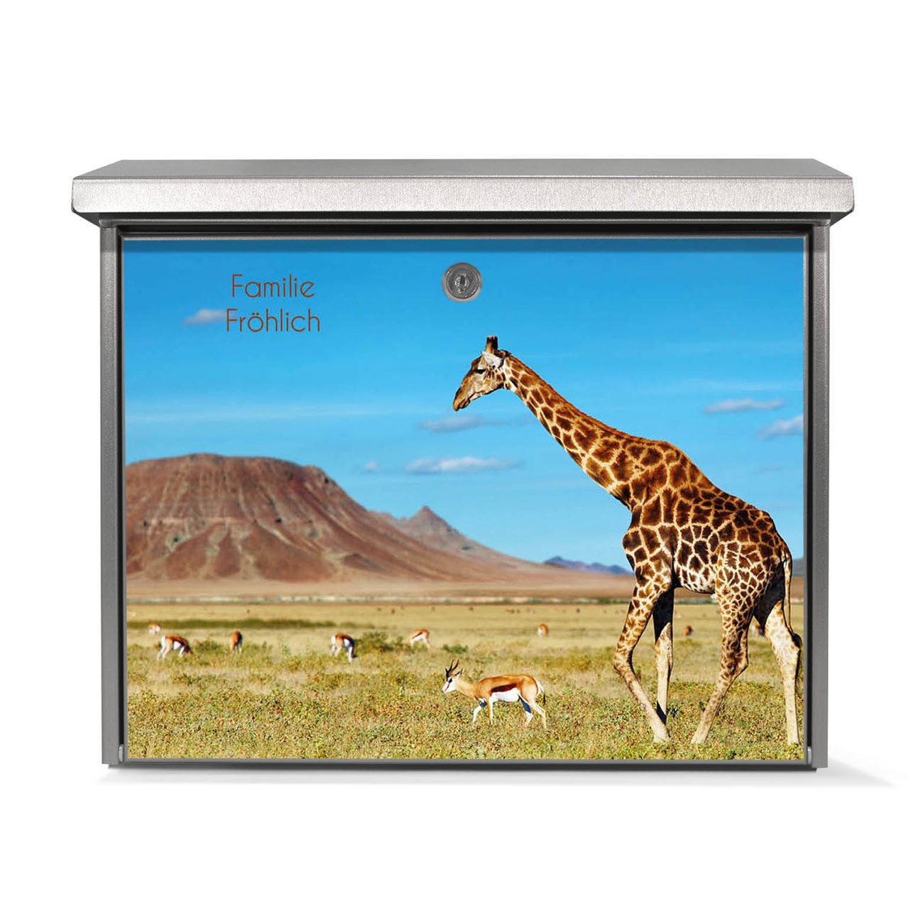 Der Postkasten mit Giraffe Motiv hat ein sehr ansprechendes und zeitloses Design. Unsere Motivpalette hält jede Menge Varianten bereit, ob klassisch, modern, verspielt oder witzig - für jeden haben wir das passende Motiv parat. Der Briefkasten ist das Aushängeschild Ihres Hauses.