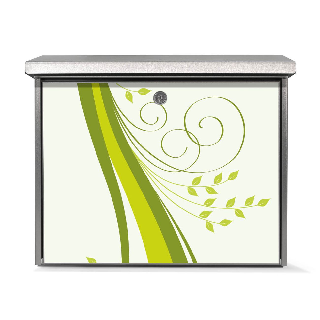 Der Postkasten mit Green Swirl Motiv hat ein sehr ansprechendes und zeitloses Design. Unsere Motivpalette hält jede Menge Varianten bereit, ob klassisch, modern, verspielt oder witzig - für jeden haben wir das passende Motiv parat. Der Briefkasten ist das Aushängeschild Ihres Hauses.