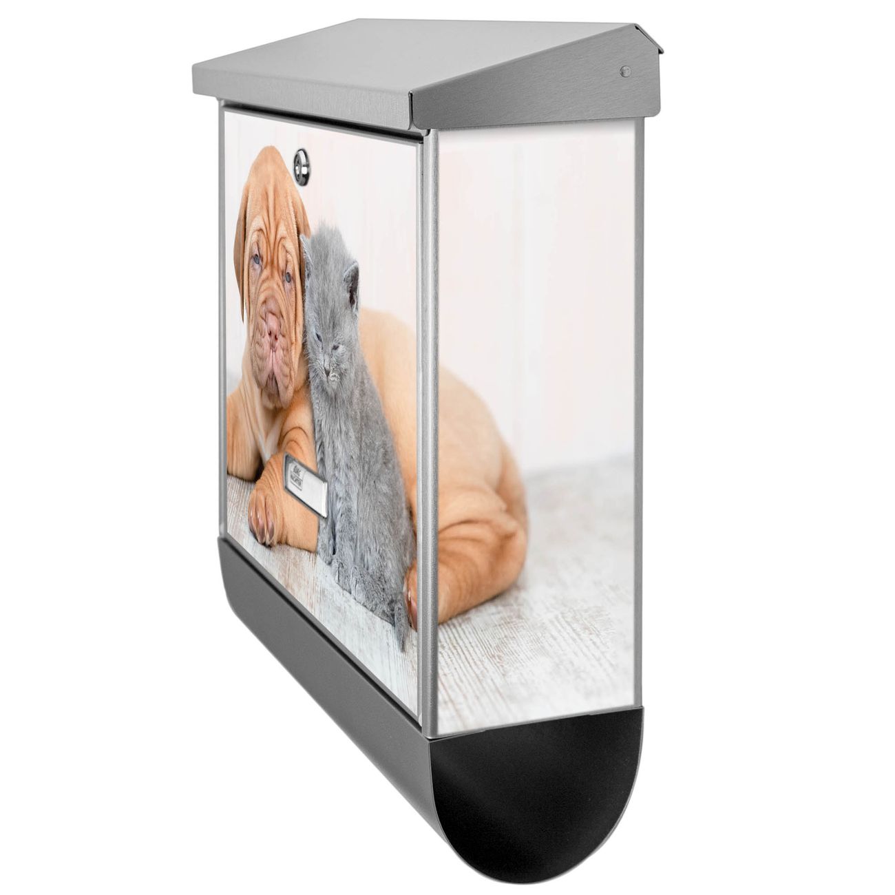 Der Hund und Katze Motivbriefkasten hat ein sehr ansprechendes und zeitloses Design. Unsere Motivpalette hält jede Menge Varianten bereit, ob klassisch, modern, verspielt oder witzig - für jeden haben wir das passende Motiv parat. Der Briefkasten mit Zeitungsfach ist Ihr Aushängeschild, heben Sie Sich ab ohne auf Funktionalität zu verzichten.