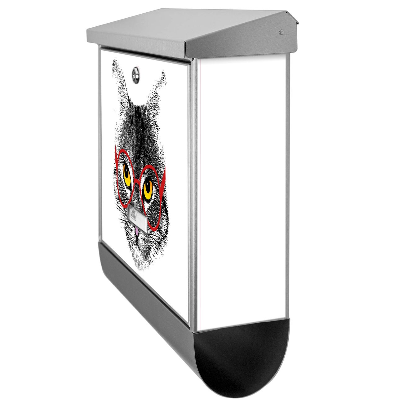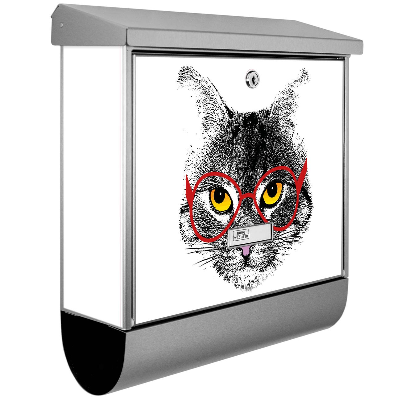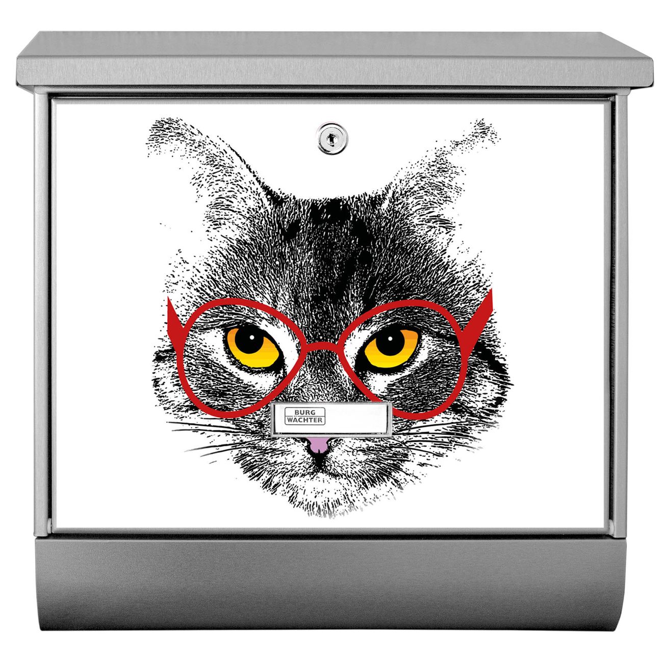 Der BURG-WÄCHTER Edelstahl Briefkasten mit Motiv Intellicat und Zeitungsrolle bietet Ihnen mit seinem Fassungsvermögen genügend Platz auch für große A4 Sendungen und Zeitschriften. Das integrierte Regendach schützt Ihre Post vor dem Eindringen von Regen.