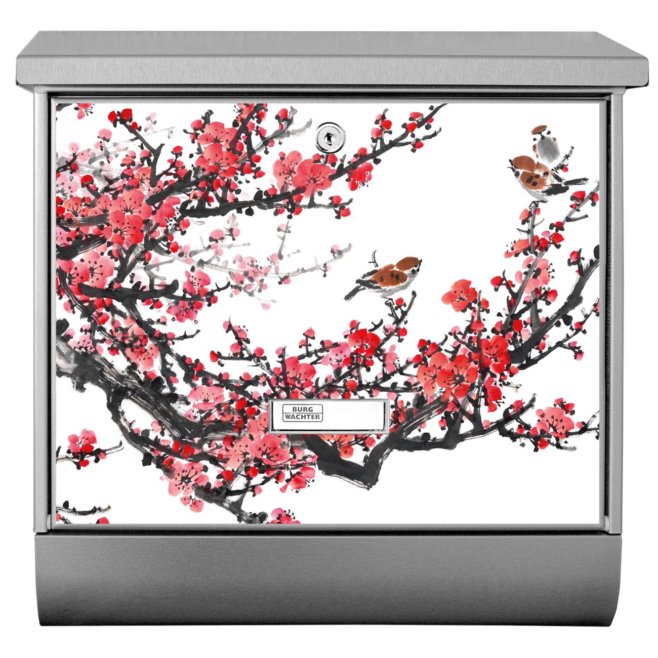 Der Japanische Blüten 1 Motivbriefkasten hat ein sehr ansprechendes und zeitloses Design. Unsere Motivpalette hält jede Menge Varianten bereit, ob klassisch, modern, verspielt oder witzig - für jeden haben wir das passende Motiv parat. Der Briefkasten mit Zeitungsfach ist Ihr Aushängeschild, heben Sie Sich ab ohne auf Funktionalität zu verzichten.