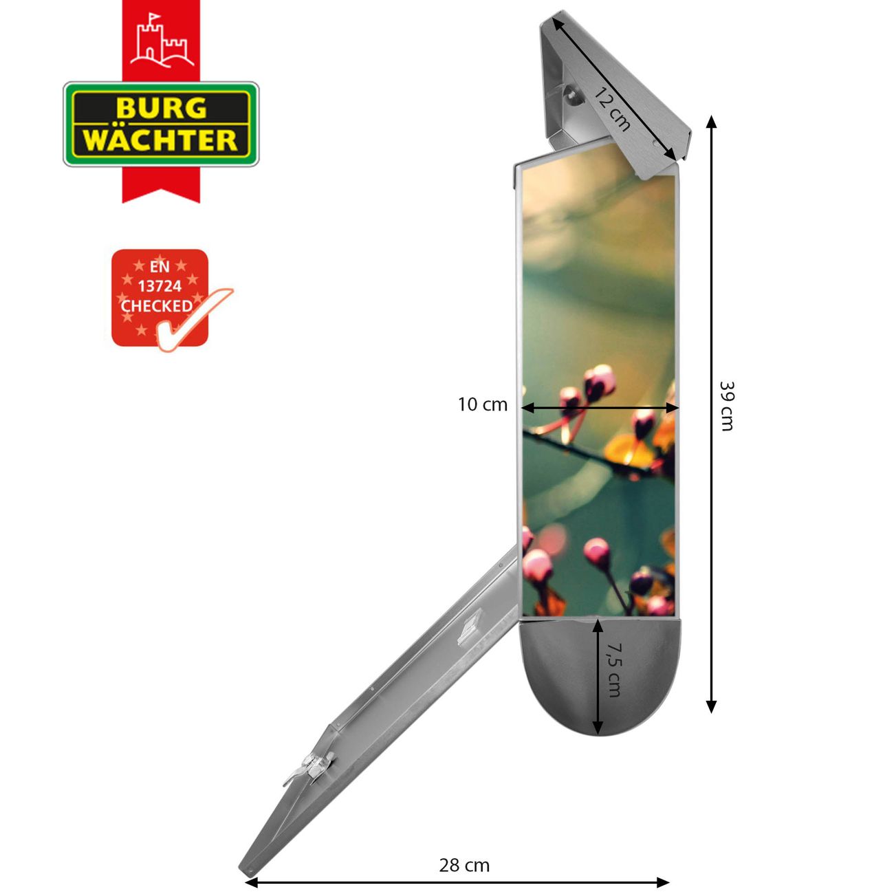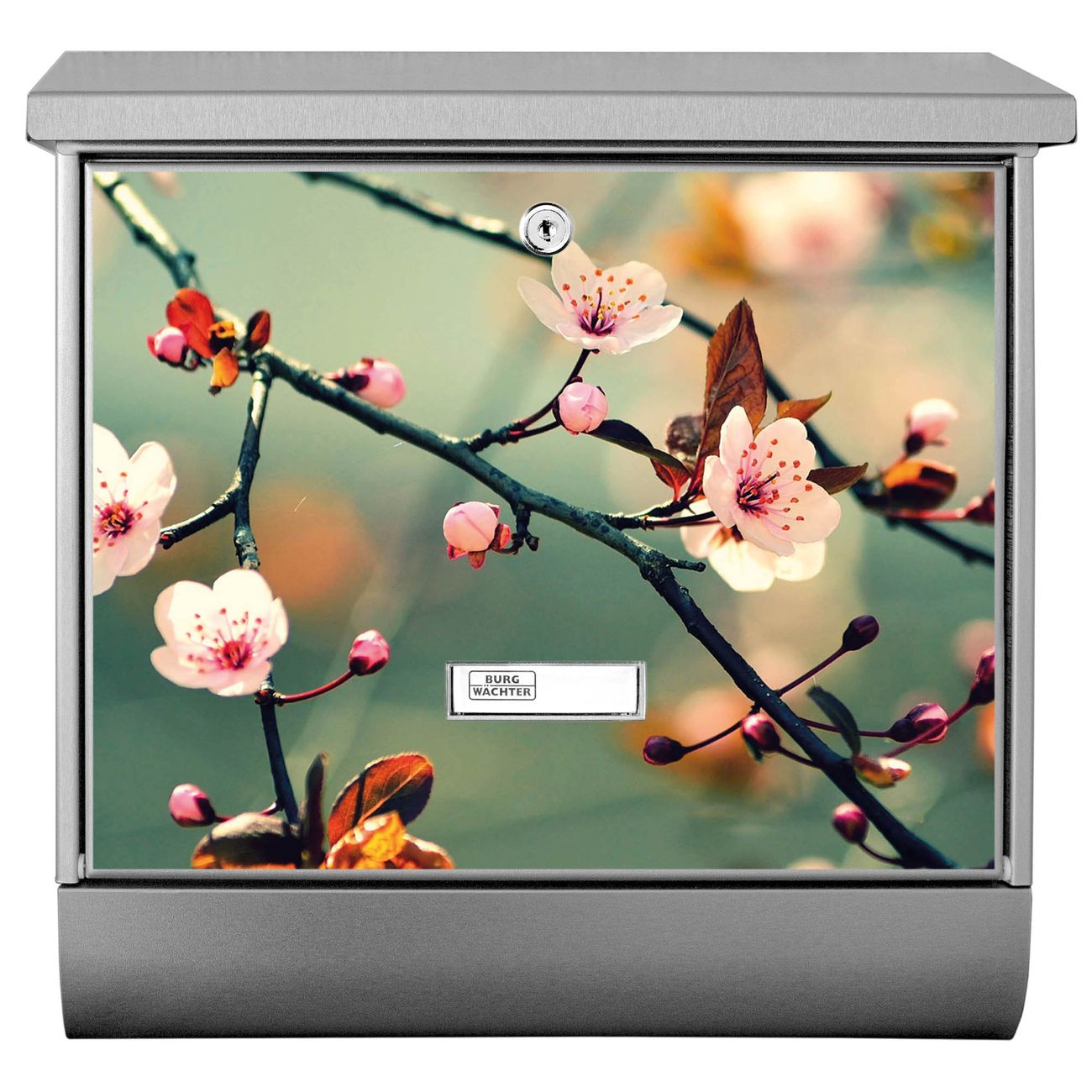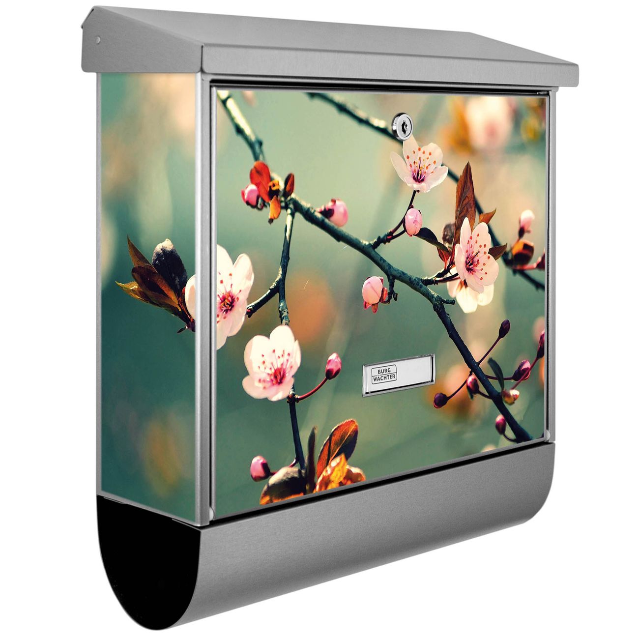 Der BURG-WÄCHTER Edelstahl Briefkasten mit Motiv Japankirsche und Zeitungsrolle bietet Ihnen mit seinem Fassungsvermögen genügend Platz auch für große A4 Sendungen und Zeitschriften. Das integrierte Regendach schützt Ihre Post vor dem Eindringen von Regen.