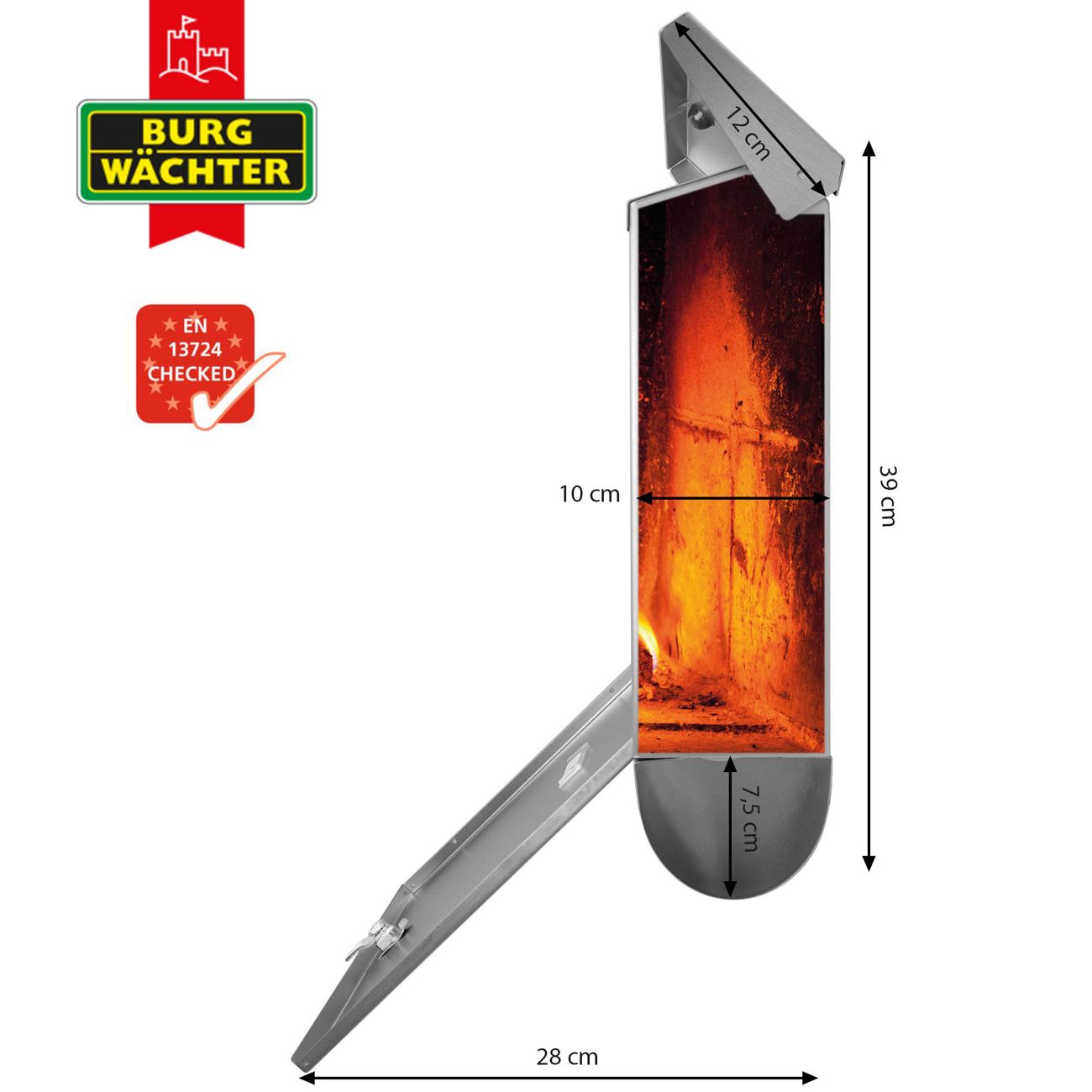 Der BURG-WÄCHTER Edelstahl Briefkasten mit Motiv Kaminfeuer und Zeitungsrolle bietet Ihnen mit seinem Fassungsvermögen genügend Platz auch für große A4 Sendungen und Zeitschriften. Das integrierte Regendach schützt Ihre Post vor dem Eindringen von Regen.