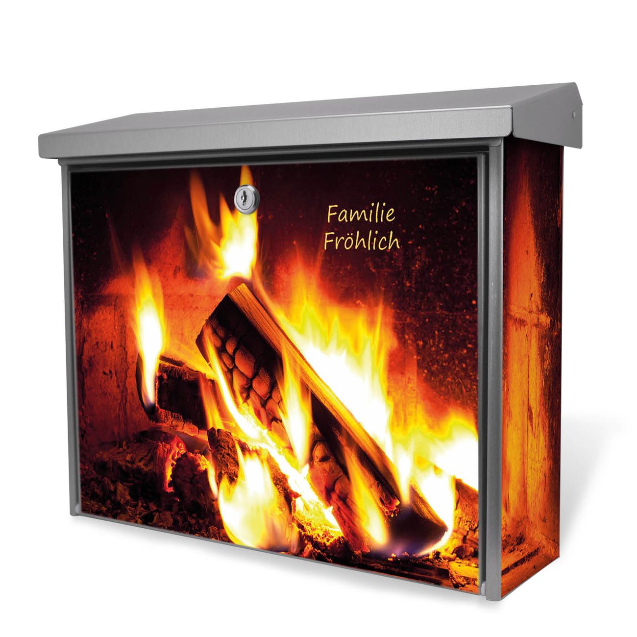 Der Postkasten mit Kaminfeuer Motiv hat ein sehr ansprechendes und zeitloses Design. Unsere Motivpalette hält jede Menge Varianten bereit, ob klassisch, modern, verspielt oder witzig - für jeden haben wir das passende Motiv parat. Der Briefkasten ist das Aushängeschild Ihres Hauses.