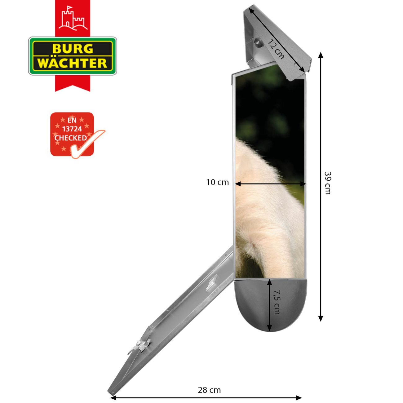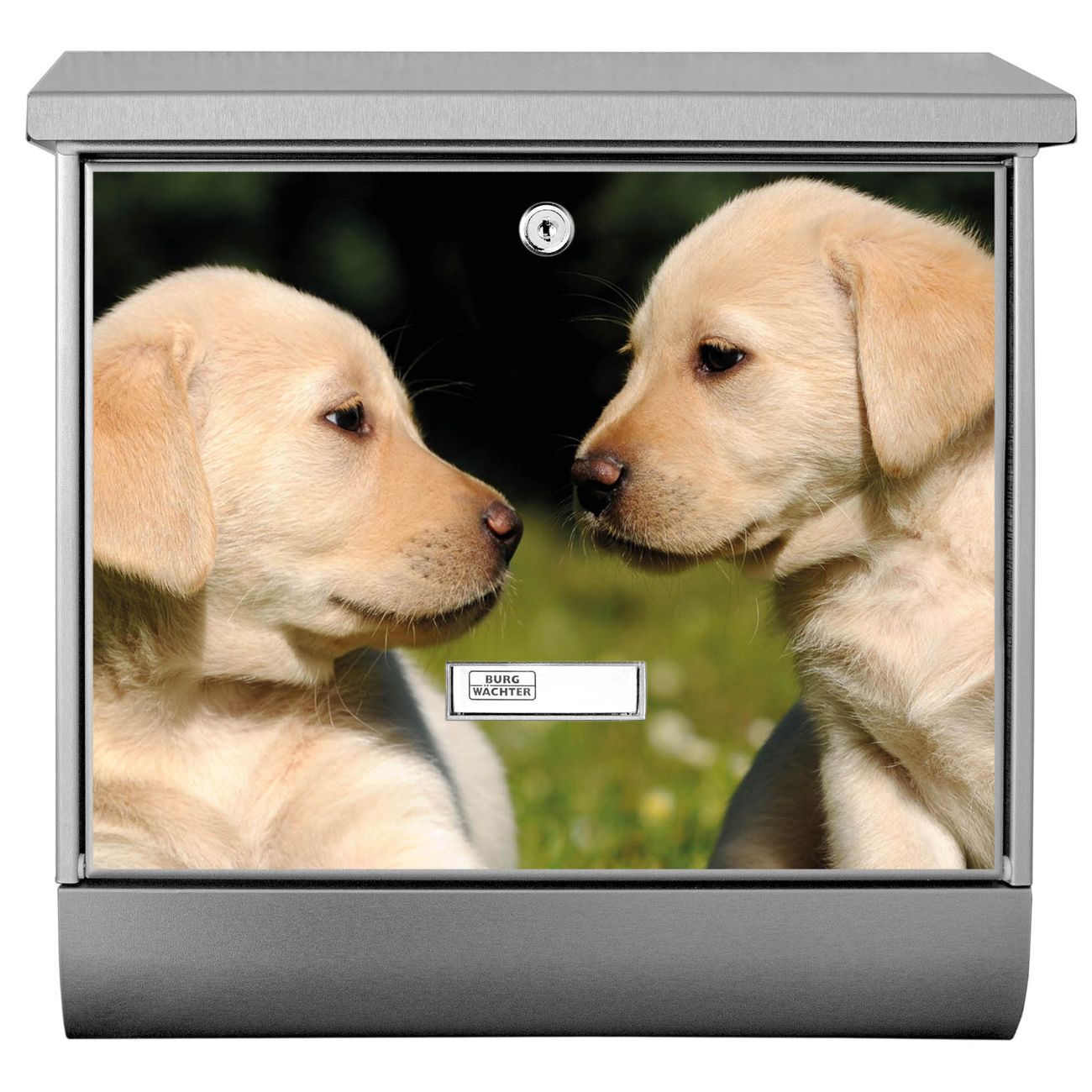 Der BURG-WÄCHTER Edelstahl Briefkasten mit Motiv Labrador und Zeitungsrolle bietet Ihnen mit seinem Fassungsvermögen genügend Platz auch für große A4 Sendungen und Zeitschriften. Das integrierte Regendach schützt Ihre Post vor dem Eindringen von Regen.