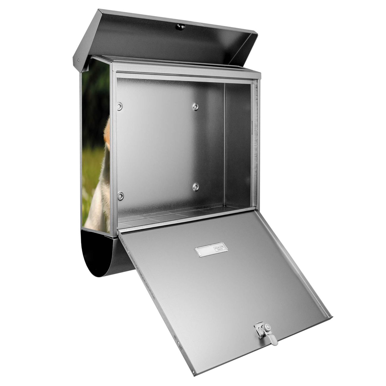 Der Briefkasten besteht aus Edelstahl, einem hochwertigen Material das rostfrei und äußerst unempfindlich gegenüber Witterungseinflüssen ist. Das Motiv besteht aus einer wetter- und UV-festen Folie, die Ihren Briefkasten zusätzlich vor Kratzern schützt. Der Postkasten ist je nach Auswahl 38 x 39 x 12 CM oder 38 x 31,5 x 12 cm (BxHxT) groß. Der Briefeinwurf ist 33,2cm x 3,1cm, Format DIN C4. Der Briefkasten wird mit Montagematerial und zwei Schlüsseln geliefert.