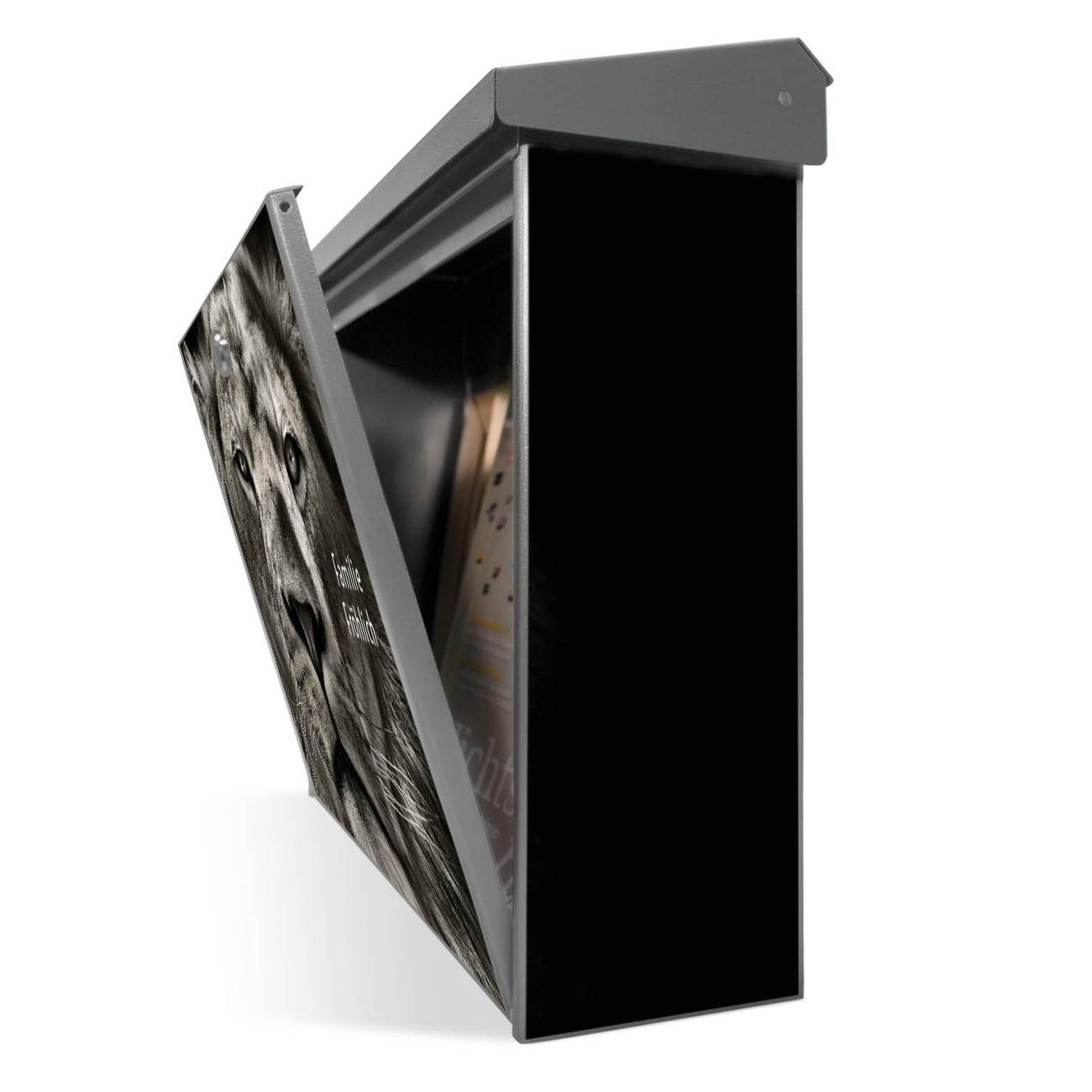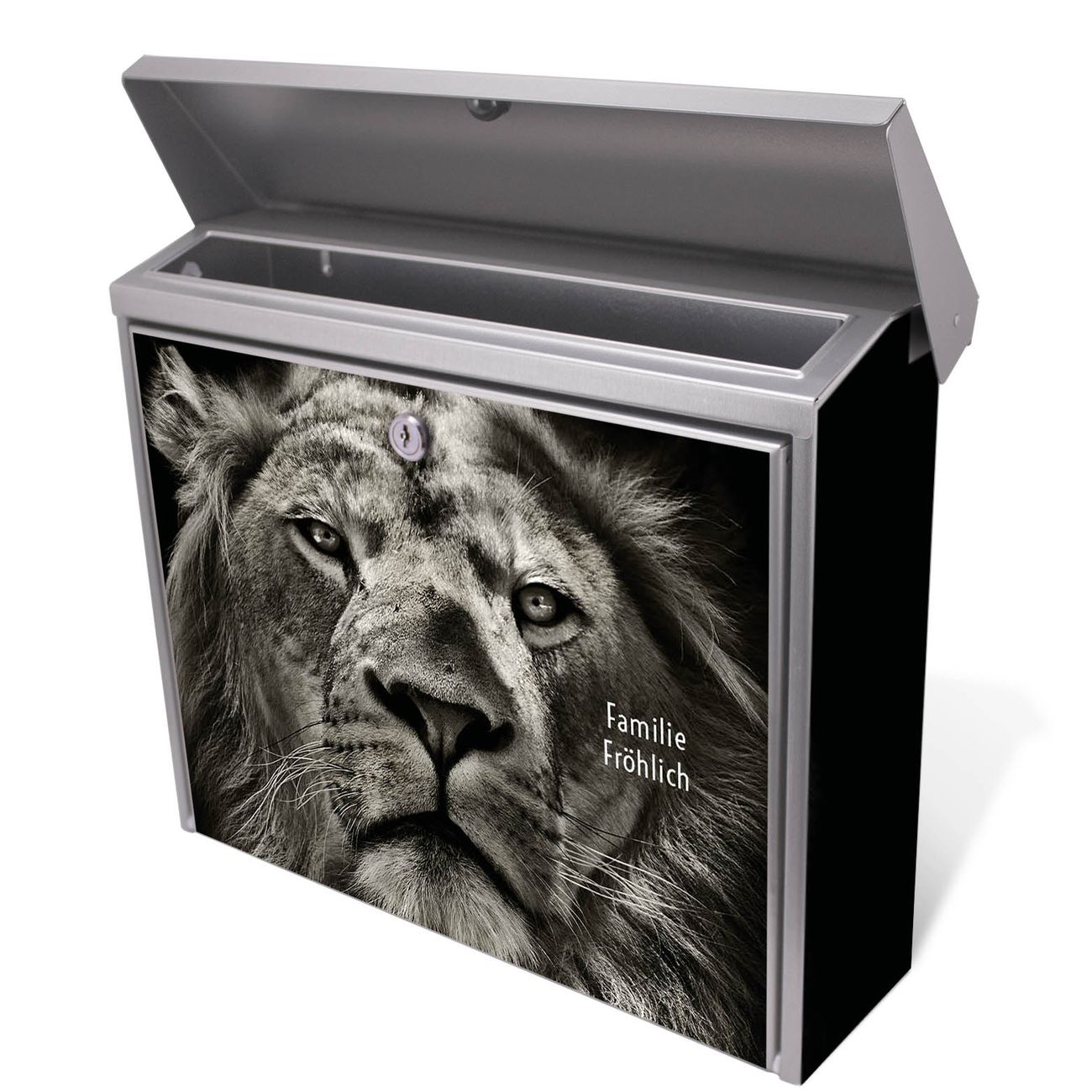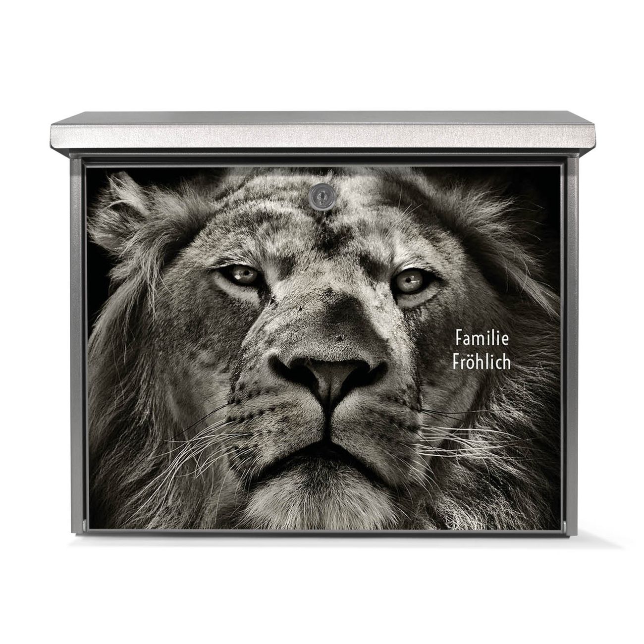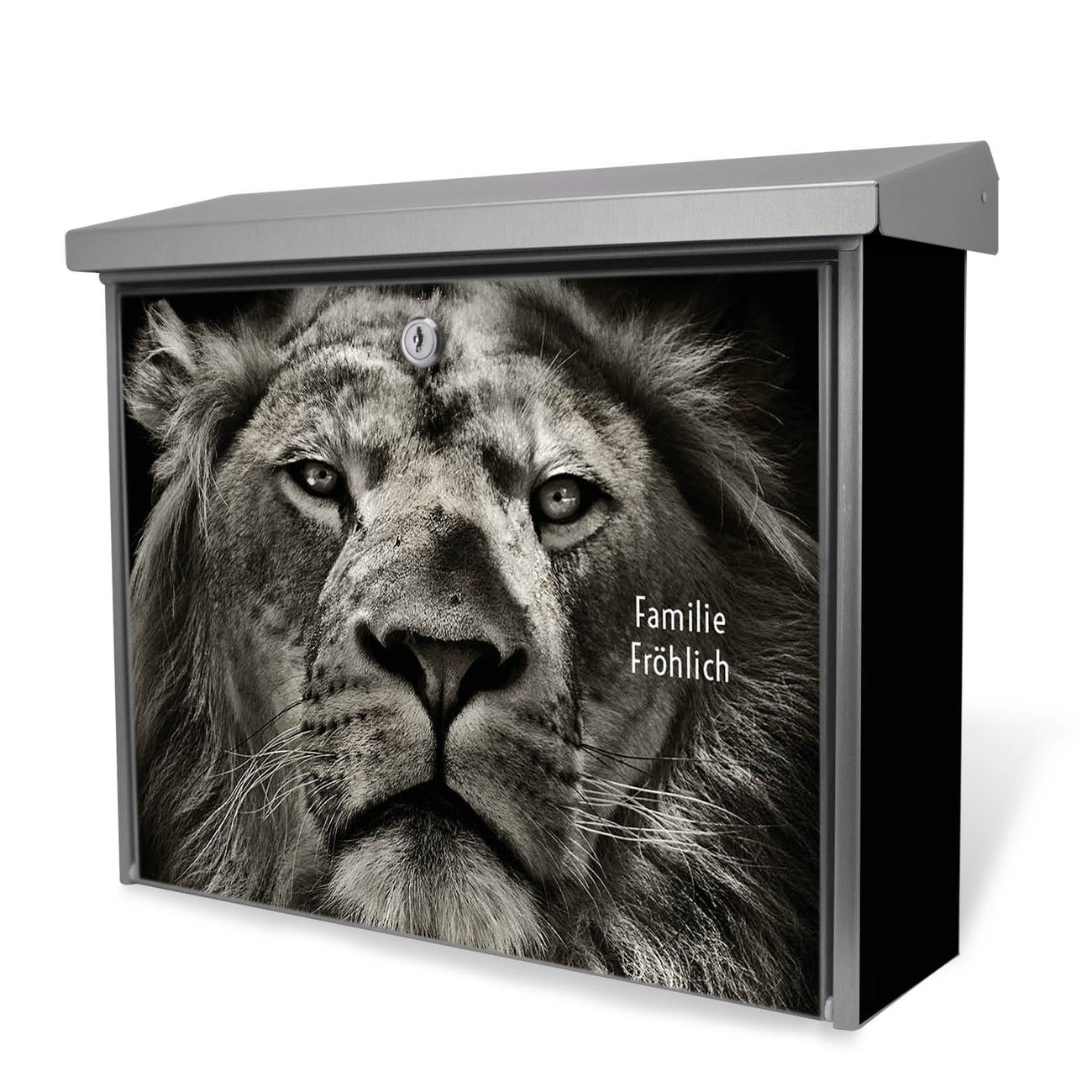 Der Postkasten mit Löwe Porträt Motiv hat ein sehr ansprechendes und zeitloses Design. Unsere Motivpalette hält jede Menge Varianten bereit, ob klassisch, modern, verspielt oder witzig - für jeden haben wir das passende Motiv parat. Der Briefkasten ist das Aushängeschild Ihres Hauses.