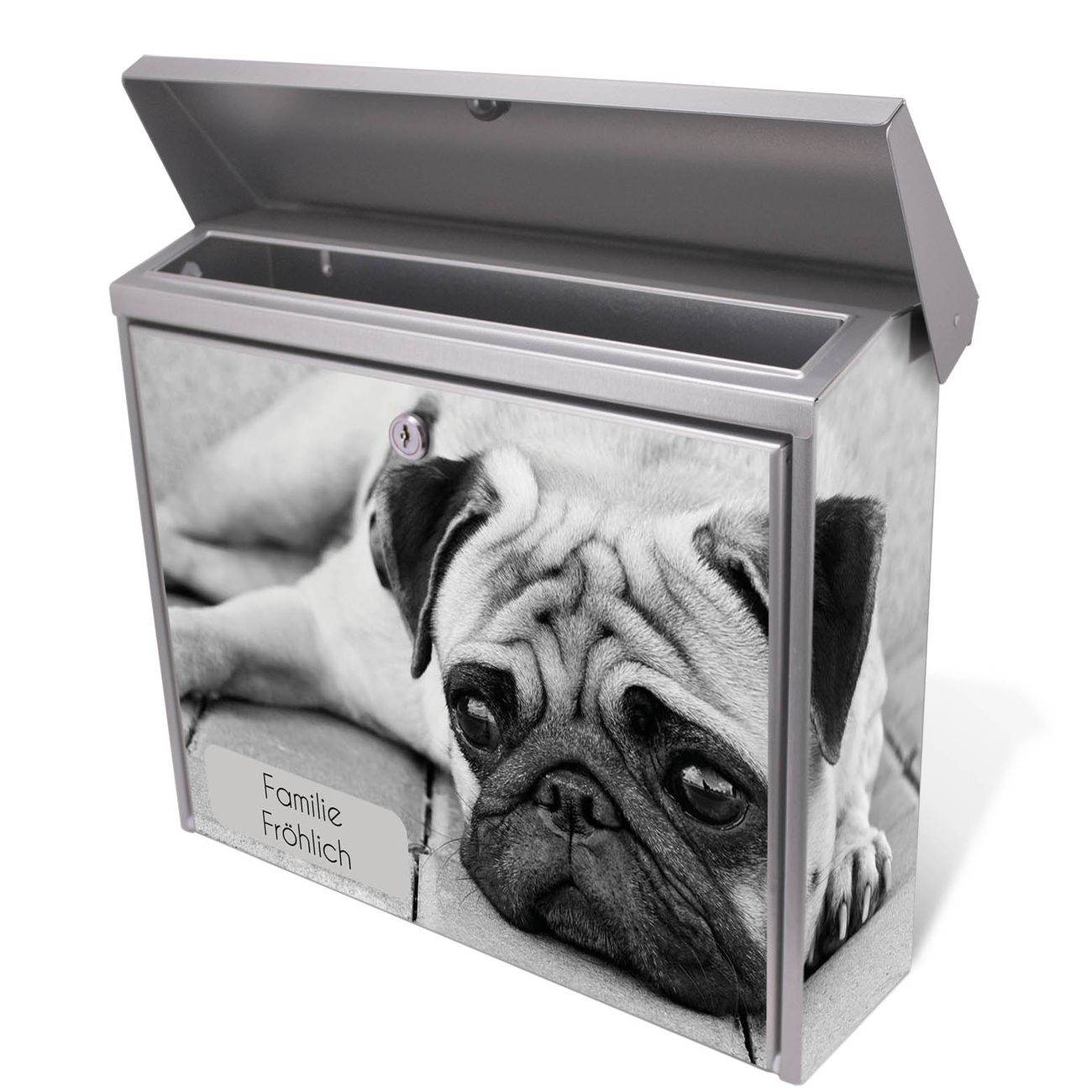 Der Postkasten mit Lotty Motiv hat ein sehr ansprechendes und zeitloses Design. Unsere Motivpalette hält jede Menge Varianten bereit, ob klassisch, modern, verspielt oder witzig - für jeden haben wir das passende Motiv parat. Der Briefkasten ist das Aushängeschild Ihres Hauses.