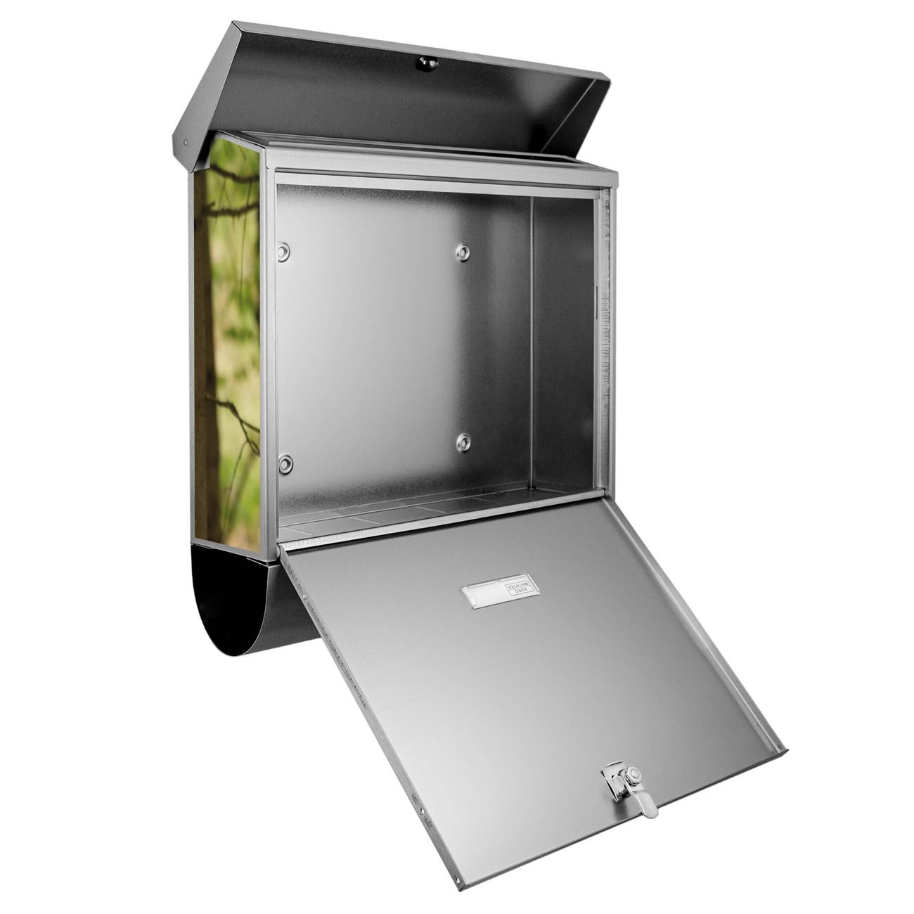 Der Briefkasten besteht aus Edelstahl, einem hochwertigen Material das rostfrei und äußerst unempfindlich gegenüber Witterungseinflüssen ist. Das Motiv besteht aus einer wetter- und UV-festen Folie, die Ihren Briefkasten zusätzlich vor Kratzern schützt. Der Postkasten ist je nach Auswahl 38 x 39 x 12 CM oder 38 x 31,5 x 12 cm (BxHxT) groß. Der Briefeinwurf ist 33,2cm x 3,1cm, Format DIN C4. Der Briefkasten wird mit Montagematerial und zwei Schlüsseln geliefert.
