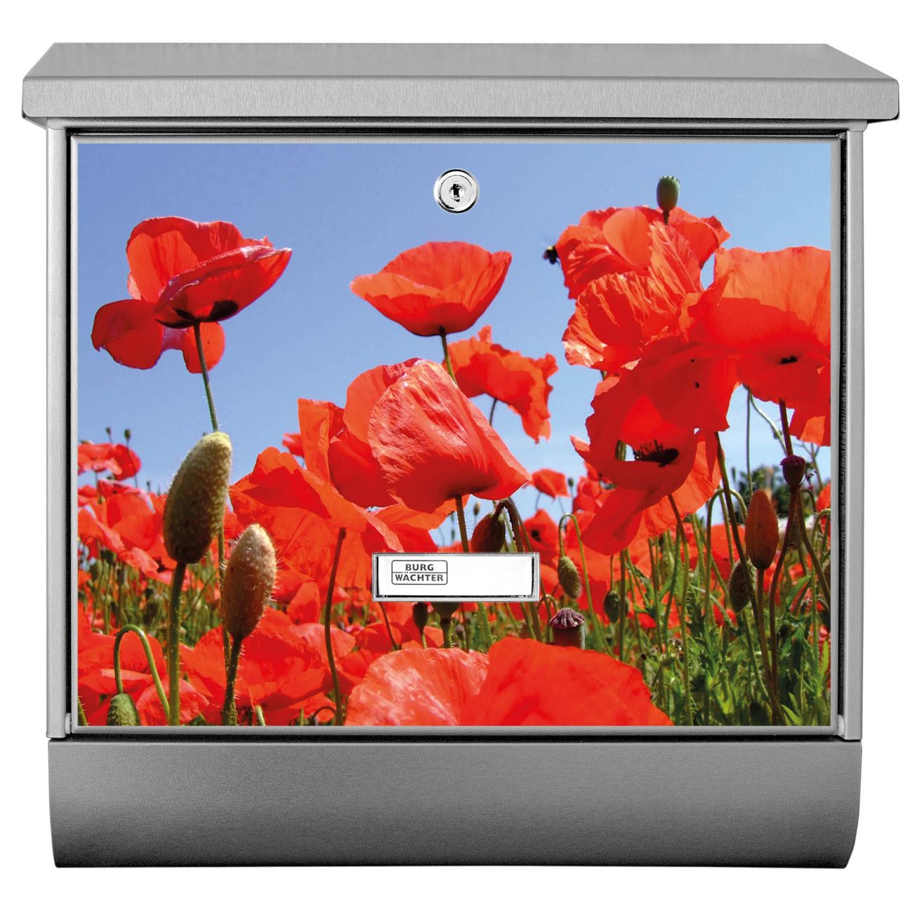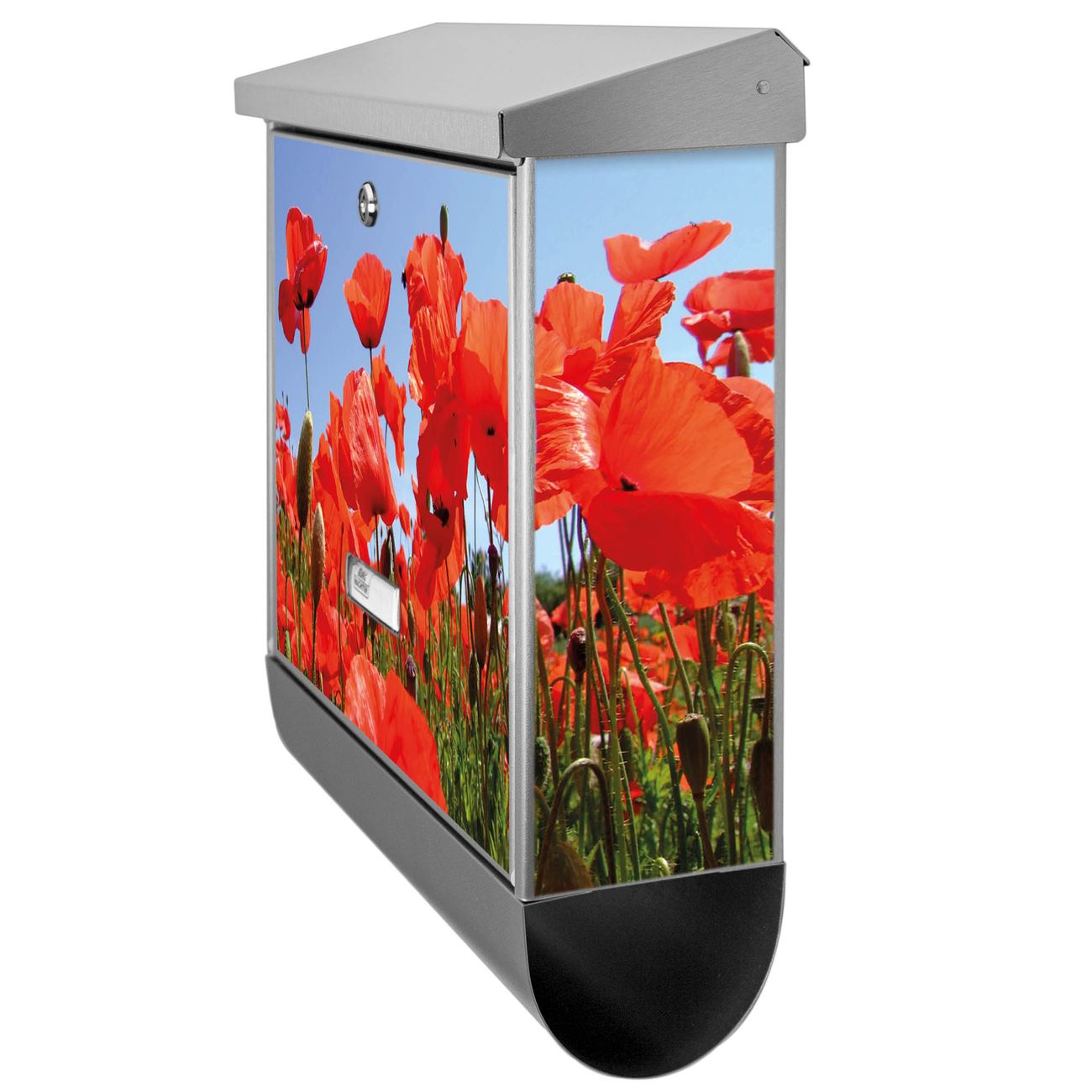 Der Mohnblumen Motivbriefkasten hat ein sehr ansprechendes und zeitloses Design. Unsere Motivpalette hält jede Menge Varianten bereit, ob klassisch, modern, verspielt oder witzig - für jeden haben wir das passende Motiv parat. Der Briefkasten mit Zeitungsfach ist Ihr Aushängeschild, heben Sie Sich ab ohne auf Funktionalität zu verzichten.