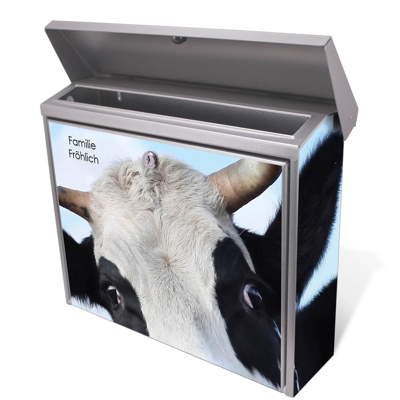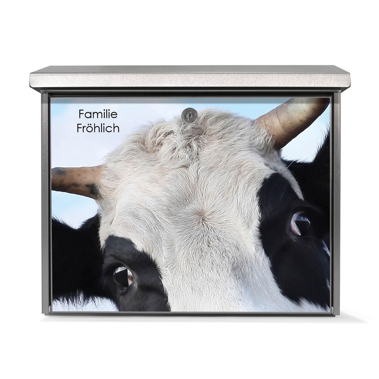 Der Postkasten mit Muh Motiv hat ein sehr ansprechendes und zeitloses Design. Unsere Motivpalette hält jede Menge Varianten bereit, ob klassisch, modern, verspielt oder witzig - für jeden haben wir das passende Motiv parat. Der Briefkasten ist das Aushängeschild Ihres Hauses.