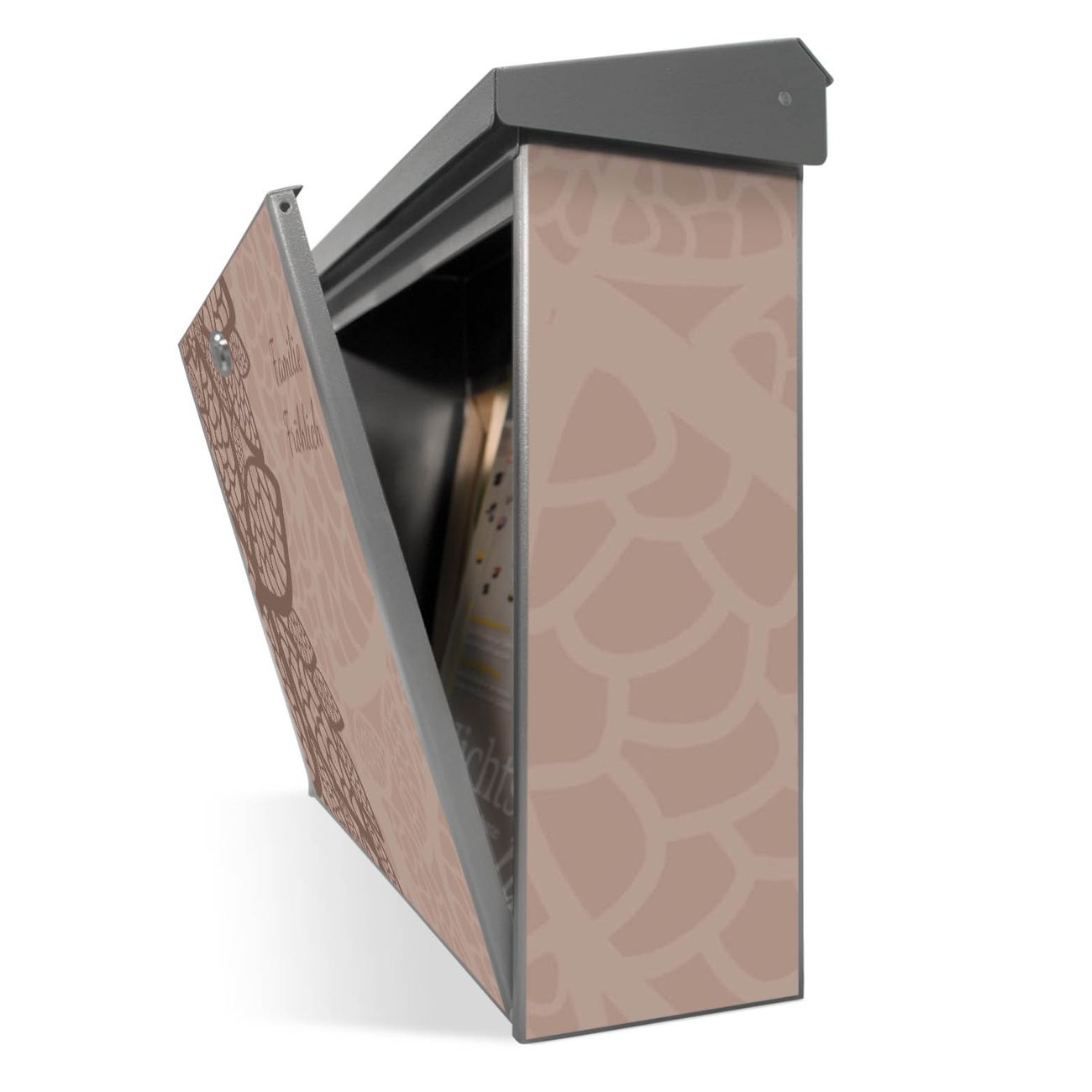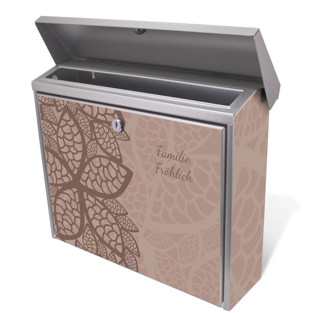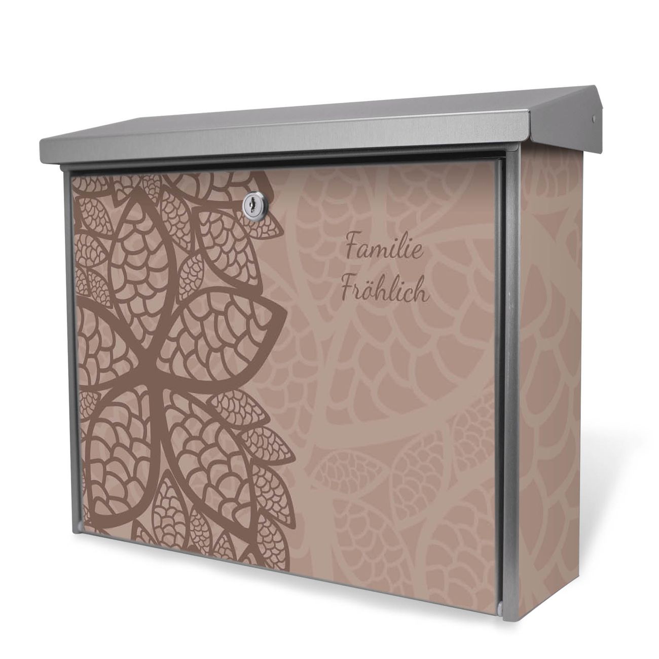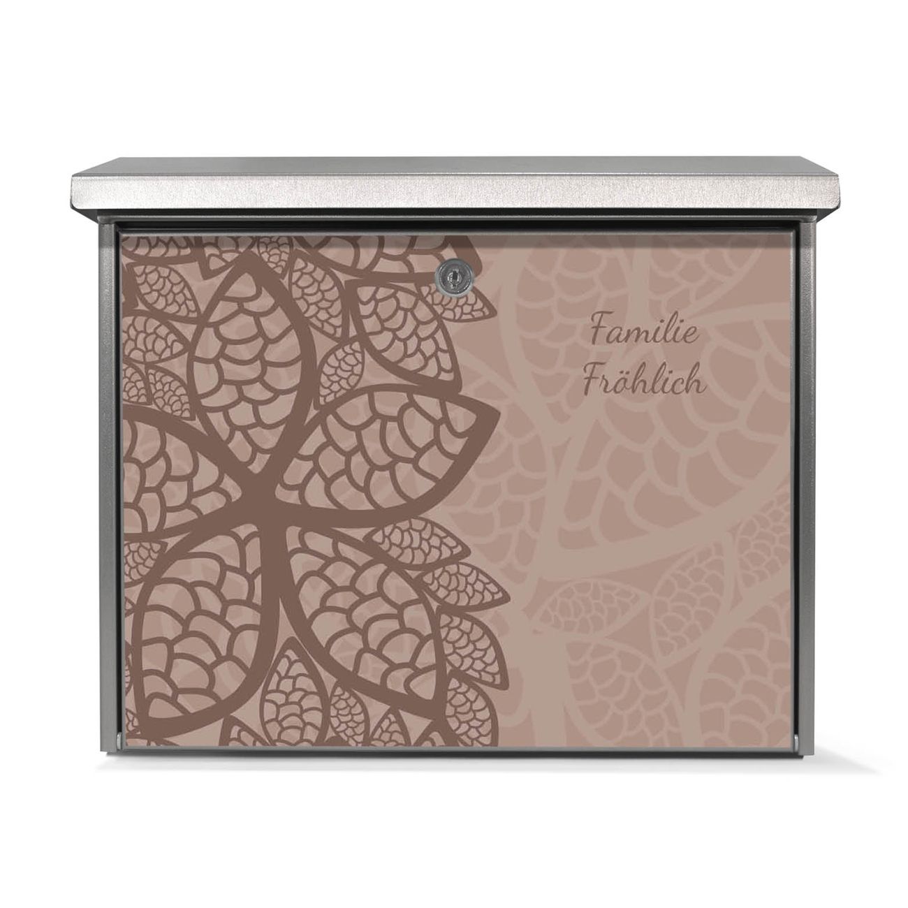 Der Postkasten mit Muster Blätter Motiv hat ein sehr ansprechendes und zeitloses Design. Unsere Motivpalette hält jede Menge Varianten bereit, ob klassisch, modern, verspielt oder witzig - für jeden haben wir das passende Motiv parat. Der Briefkasten ist das Aushängeschild Ihres Hauses.