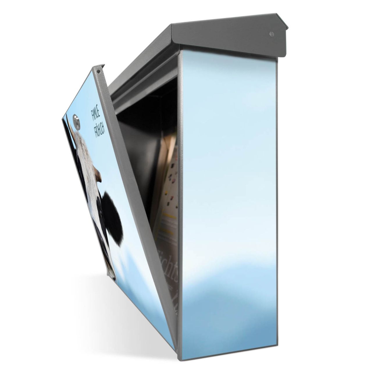 Sie können diesen Briefkasten sowohl als Wandbriefkasten montieren oder mit dem passenden Ständer als Standbriefkasten einbetonieren. Die gestaltete Motivfolie ist absolut wetterfest, UV-beständig und ein zusätzliches Schutzlaminat bewahrt Ihren Briefkasten vor unnötigen Kratzern.
