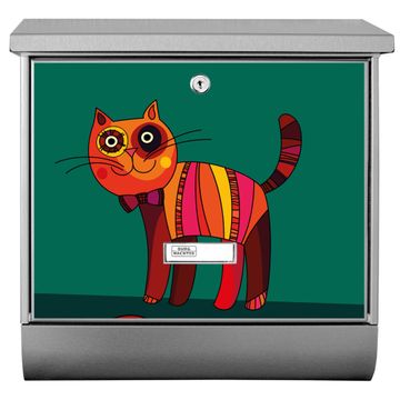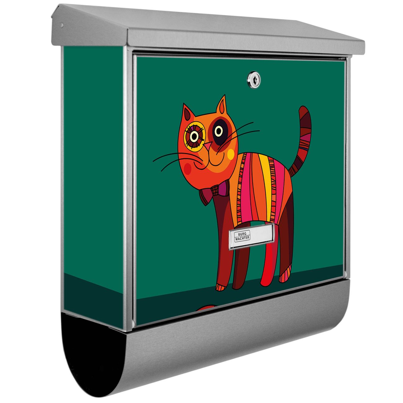 Der BURG-WÄCHTER Edelstahl Briefkasten mit Motiv Orange Katze und Zeitungsrolle bietet Ihnen mit seinem Fassungsvermögen genügend Platz auch für große A4 Sendungen und Zeitschriften. Das integrierte Regendach schützt Ihre Post vor dem Eindringen von Regen.