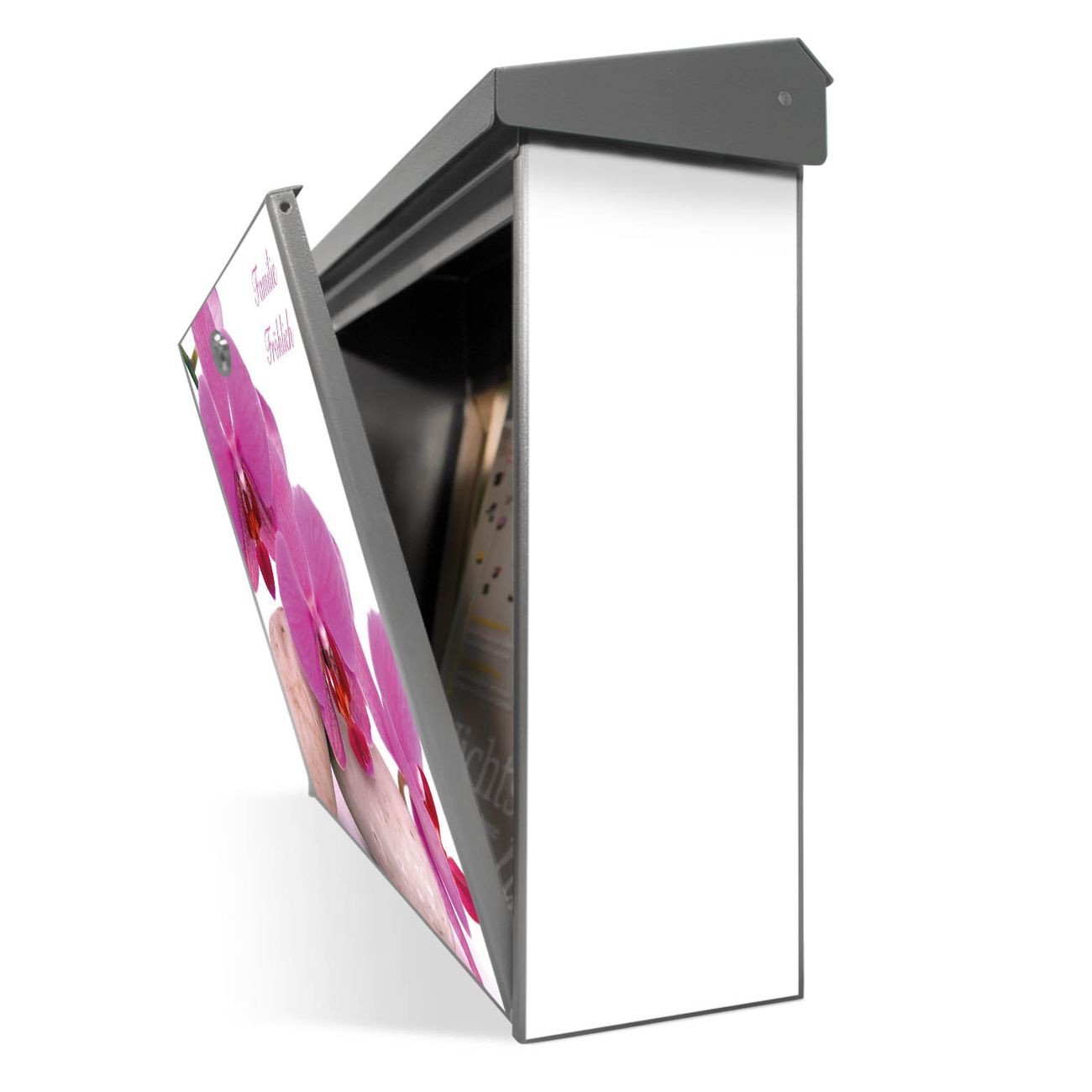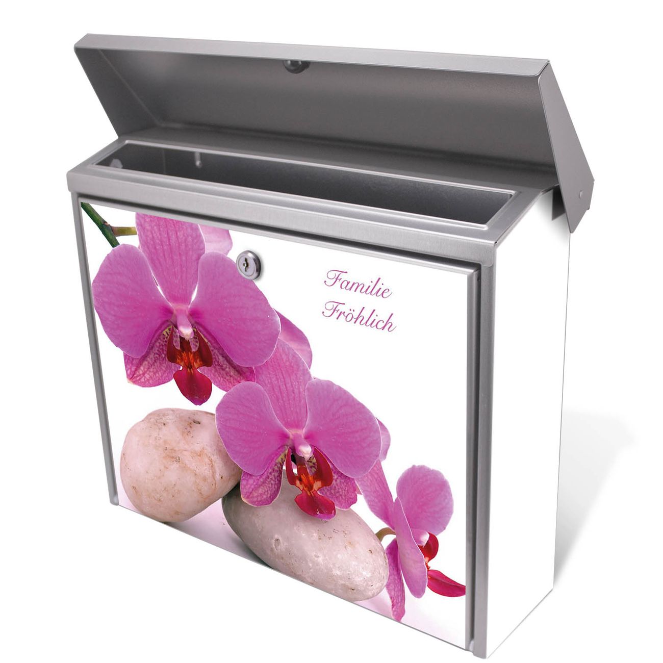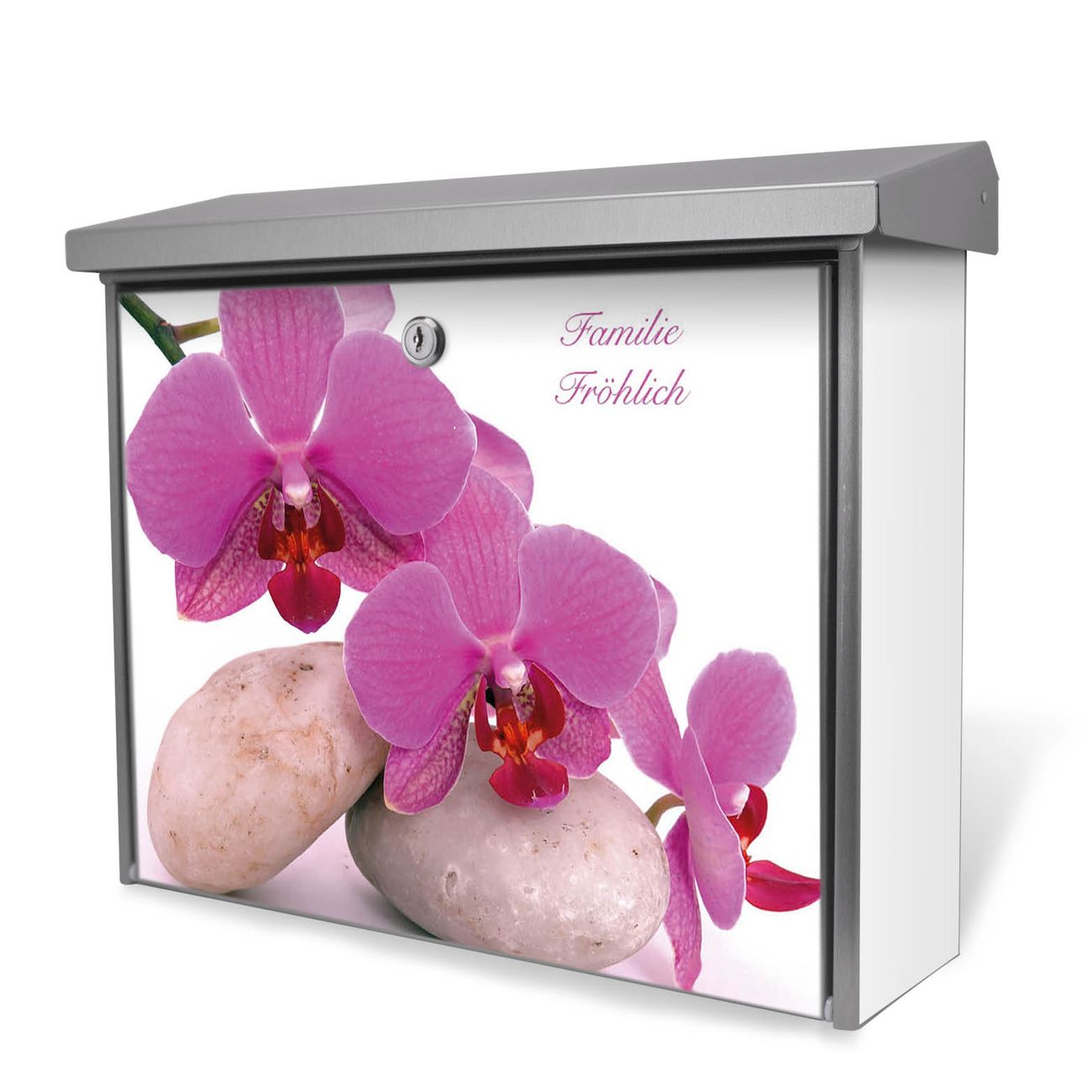 Der Postkasten mit Orchidee Motiv hat ein sehr ansprechendes und zeitloses Design. Unsere Motivpalette hält jede Menge Varianten bereit, ob klassisch, modern, verspielt oder witzig - für jeden haben wir das passende Motiv parat. Der Briefkasten ist das Aushängeschild Ihres Hauses.