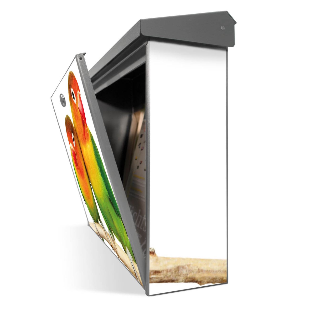 Der Postkasten mit Papageien Motiv hat ein sehr ansprechendes und zeitloses Design. Unsere Motivpalette hält jede Menge Varianten bereit, ob klassisch, modern, verspielt oder witzig - für jeden haben wir das passende Motiv parat. Der Briefkasten ist das Aushängeschild Ihres Hauses.