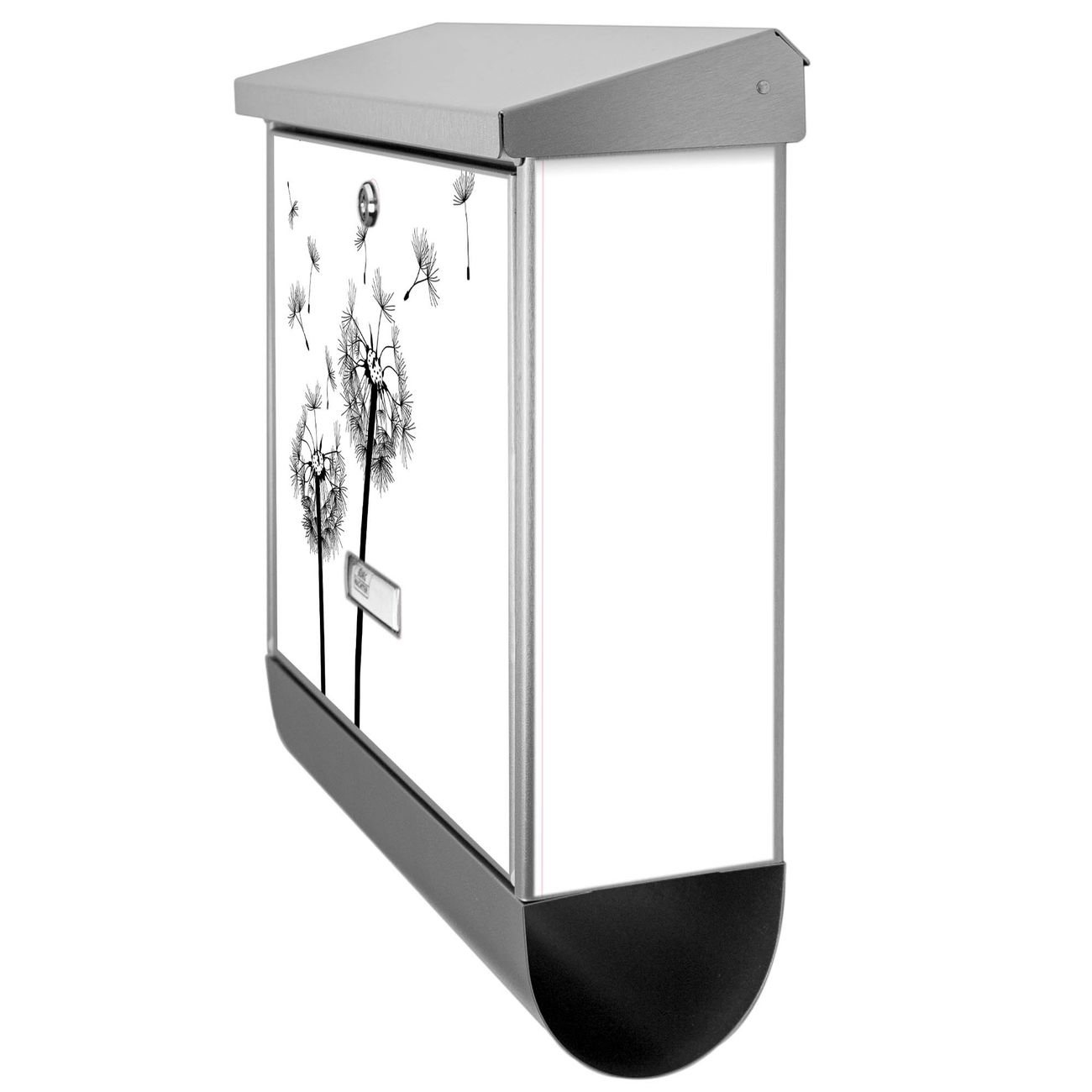 Der BURG-WÄCHTER Edelstahl Briefkasten mit Motiv Pusteblume 2 und Zeitungsrolle bietet Ihnen mit seinem Fassungsvermögen genügend Platz auch für große A4 Sendungen und Zeitschriften. Das integrierte Regendach schützt Ihre Post vor dem Eindringen von Regen.