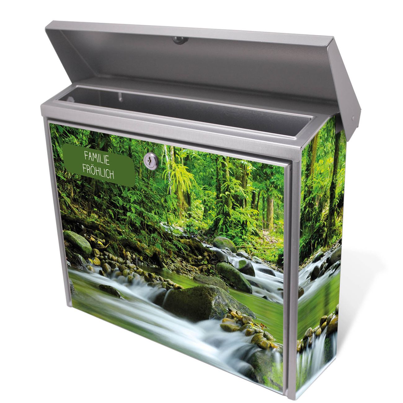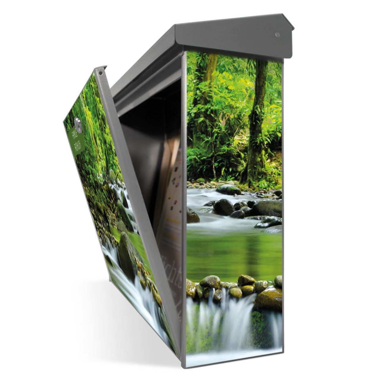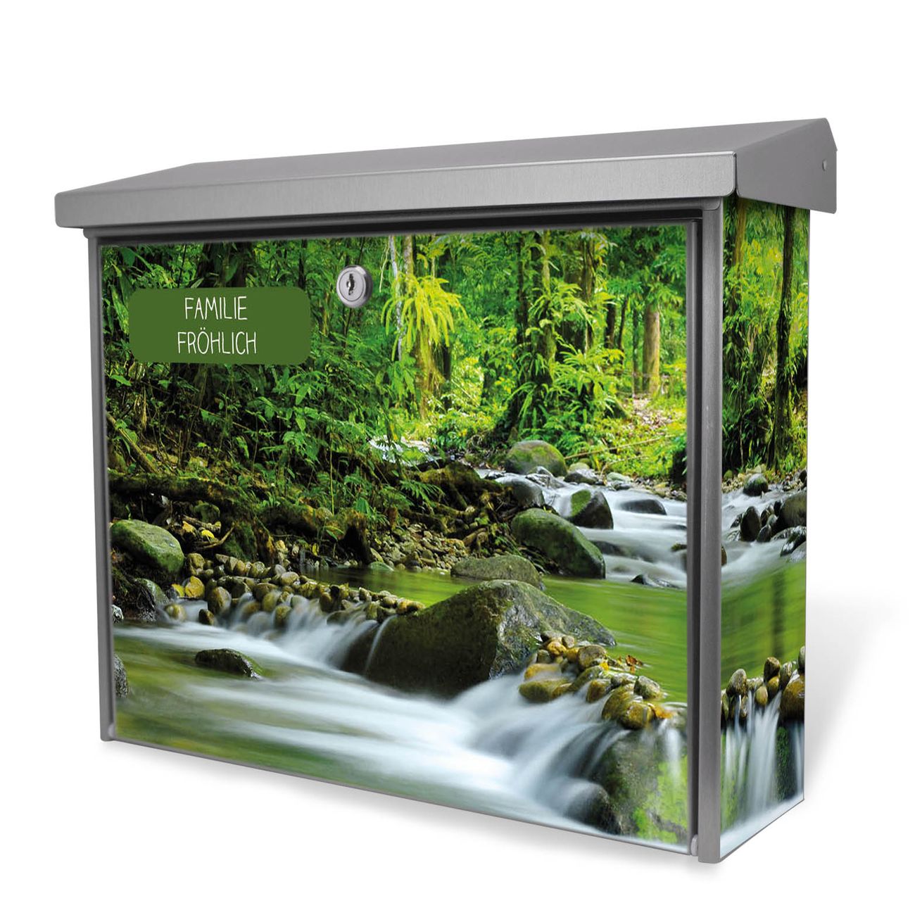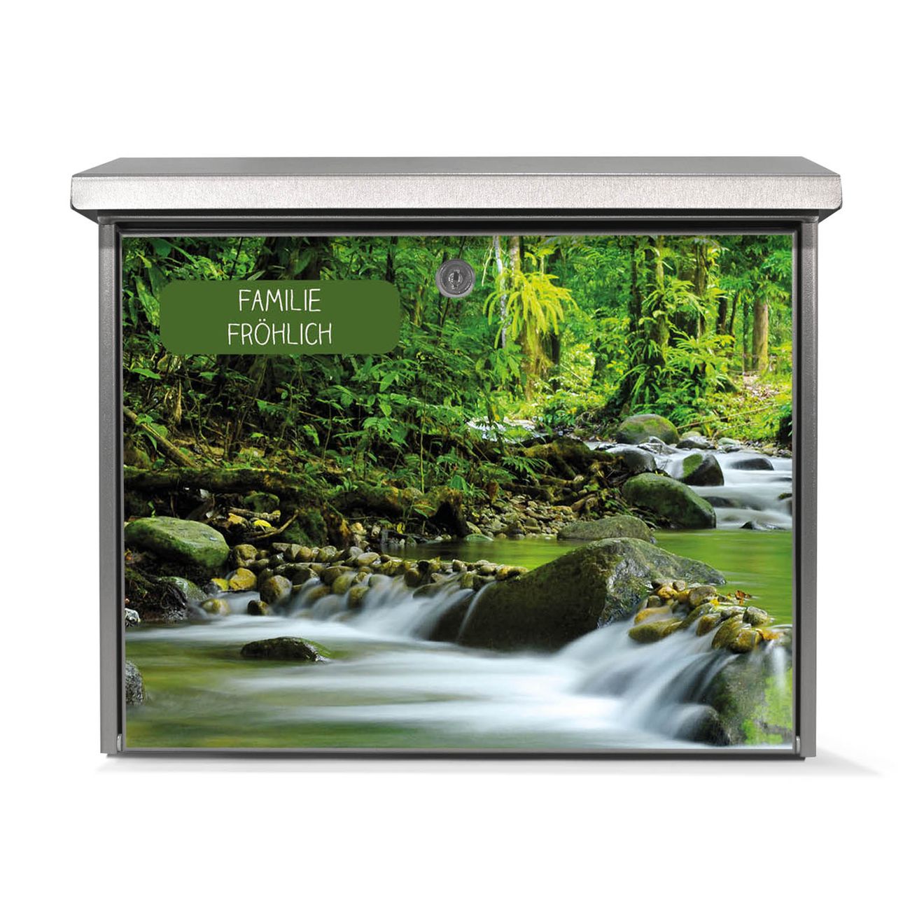 Der Postkasten mit Rauschender Bach Motiv hat ein sehr ansprechendes und zeitloses Design. Unsere Motivpalette hält jede Menge Varianten bereit, ob klassisch, modern, verspielt oder witzig - für jeden haben wir das passende Motiv parat. Der Briefkasten ist das Aushängeschild Ihres Hauses.