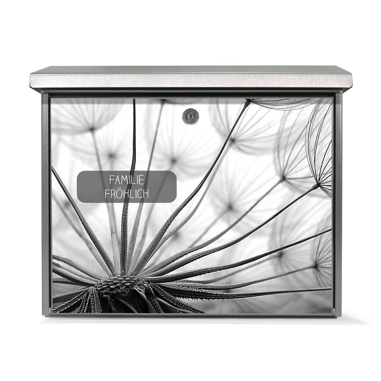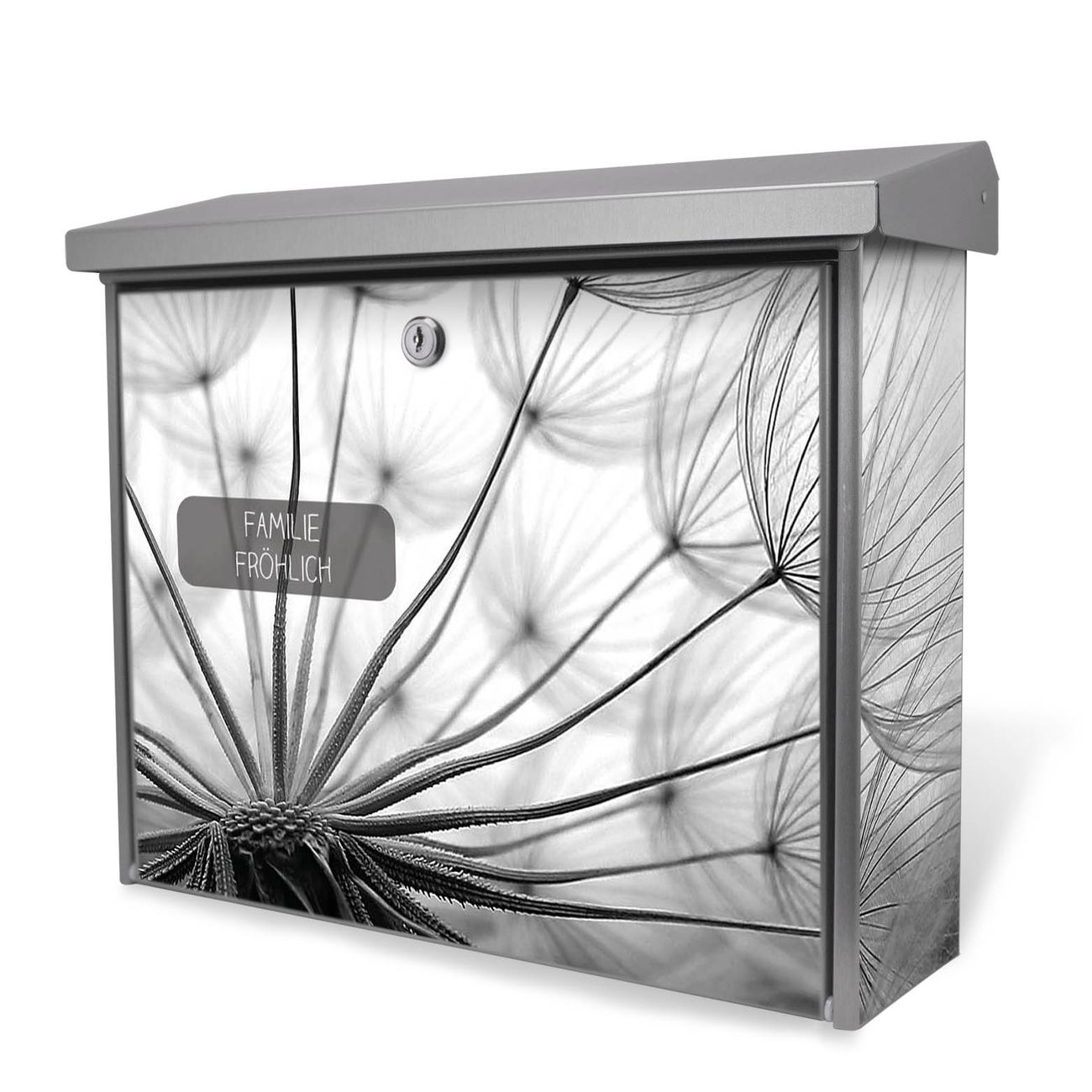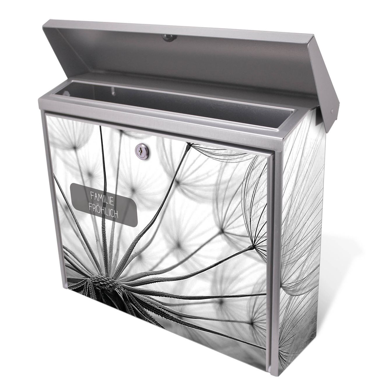 Der Briefkasten besteht aus Edelstahl, einem hochwertigen Material das witterungsbeständig ist. Das Motiv besteht aus einer wetter- und UV-festen Folie, die Ihren Briefkasten zusätzlich vor Kratzern schützt. Der Postkasten ist 31,5cm hoch, 38,5cm breit und 12cm tief. Der Briefeinwurf ist 33,2cm x 2,7cm, Format DIN C4. Der Briefkasten wird mit Montagematerial und zwei Schlüsseln geliefert.