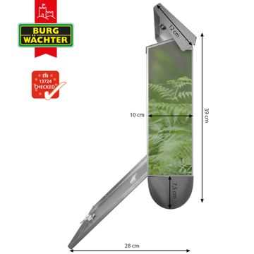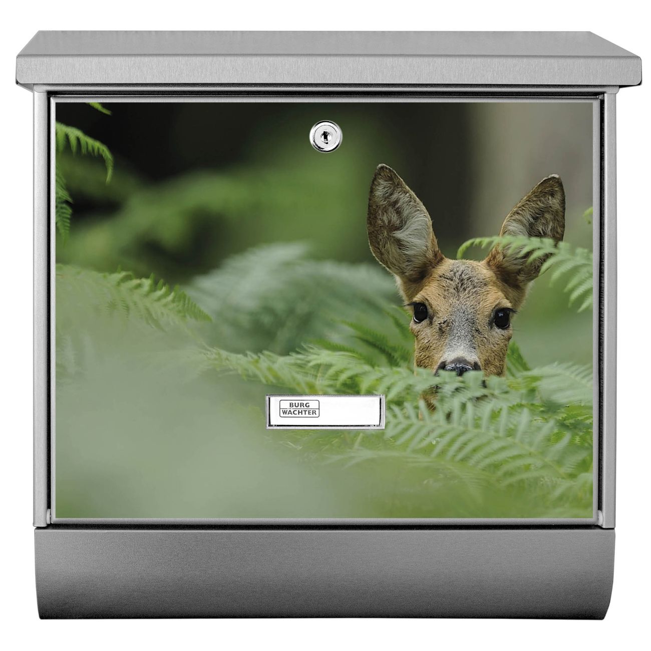 Der BURG-WÄCHTER Edelstahl Briefkasten mit Motiv Reh und Zeitungsrolle bietet Ihnen mit seinem Fassungsvermögen genügend Platz auch für große A4 Sendungen und Zeitschriften. Das integrierte Regendach schützt Ihre Post vor dem Eindringen von Regen.