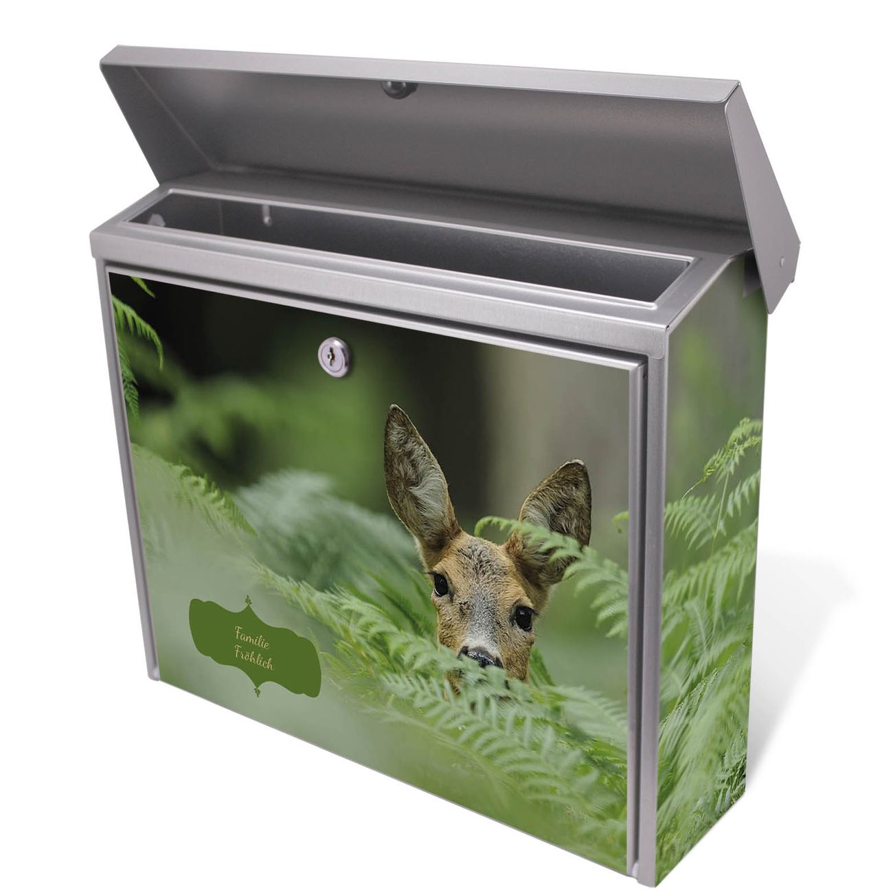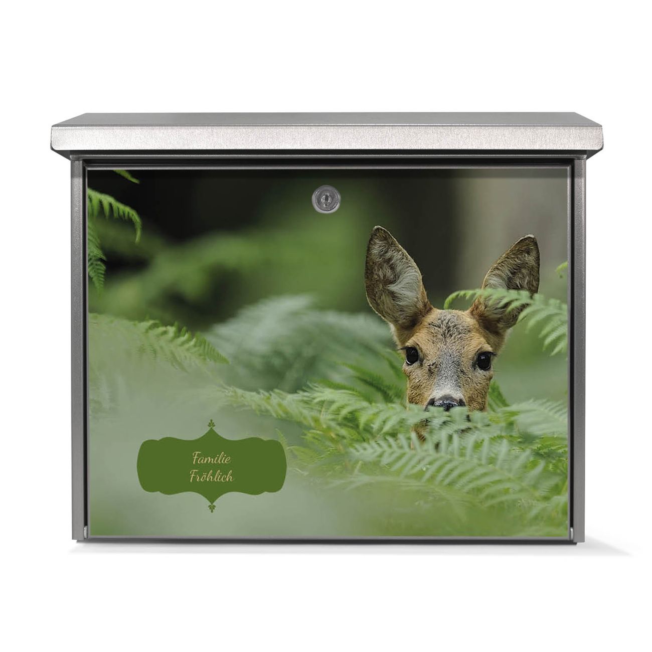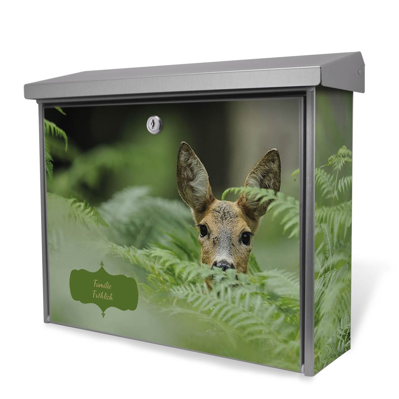 Der Postkasten mit Reh Motiv hat ein sehr ansprechendes und zeitloses Design. Unsere Motivpalette hält jede Menge Varianten bereit, ob klassisch, modern, verspielt oder witzig - für jeden haben wir das passende Motiv parat. Der Briefkasten ist das Aushängeschild Ihres Hauses.