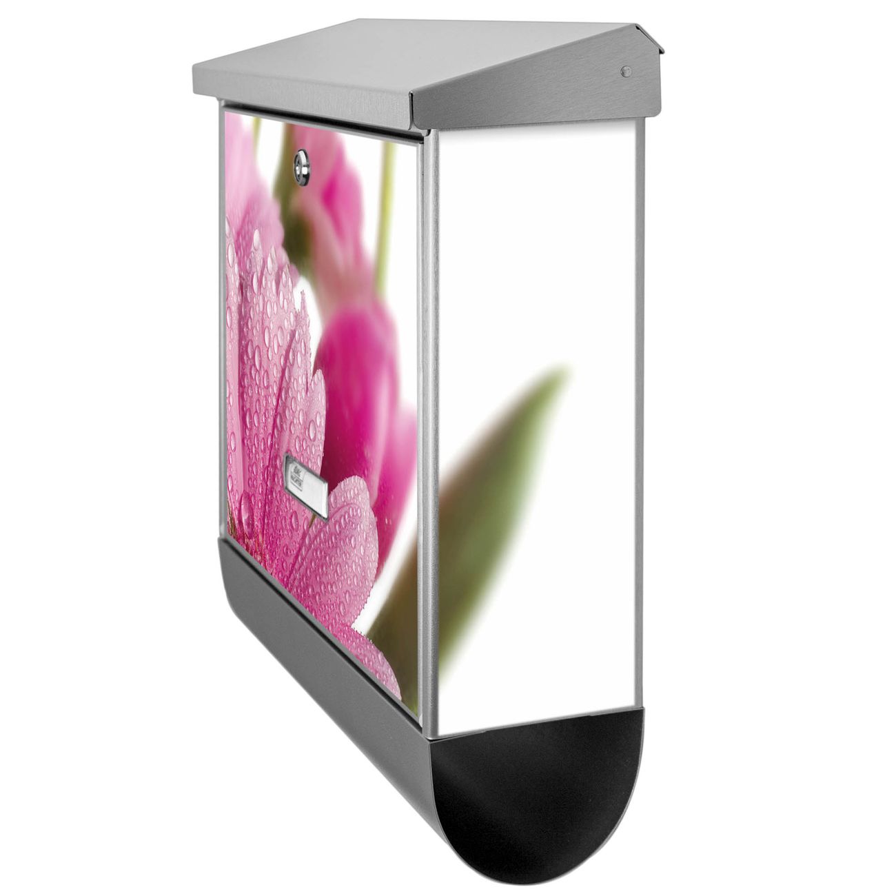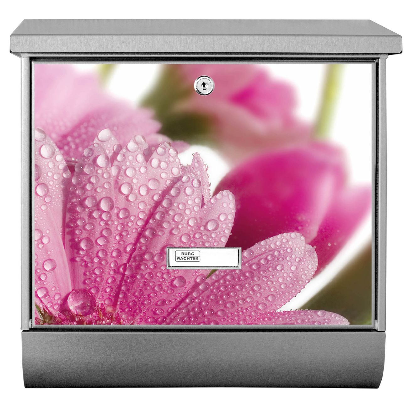 Der BURG-WÄCHTER Edelstahl Briefkasten mit Motiv Rosa Gerbera und Zeitungsrolle bietet Ihnen mit seinem Fassungsvermögen genügend Platz auch für große A4 Sendungen und Zeitschriften. Das integrierte Regendach schützt Ihre Post vor dem Eindringen von Regen.