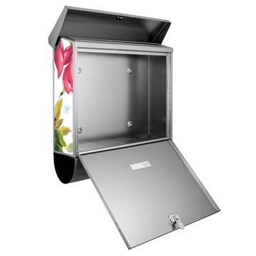 Der Briefkasten besteht aus Edelstahl, einem hochwertigen Material das rostfrei und äußerst unempfindlich gegenüber Witterungseinflüssen ist. Das Motiv besteht aus einer wetter- und UV-festen Folie, die Ihren Briefkasten zusätzlich vor Kratzern schützt. Der Postkasten ist je nach Auswahl 38 x 39 x 12 CM oder 38 x 31,5 x 12 cm (BxHxT) groß. Der Briefeinwurf ist 33,2cm x 3,1cm, Format DIN C4. Der Briefkasten wird mit Montagematerial und zwei Schlüsseln geliefert.