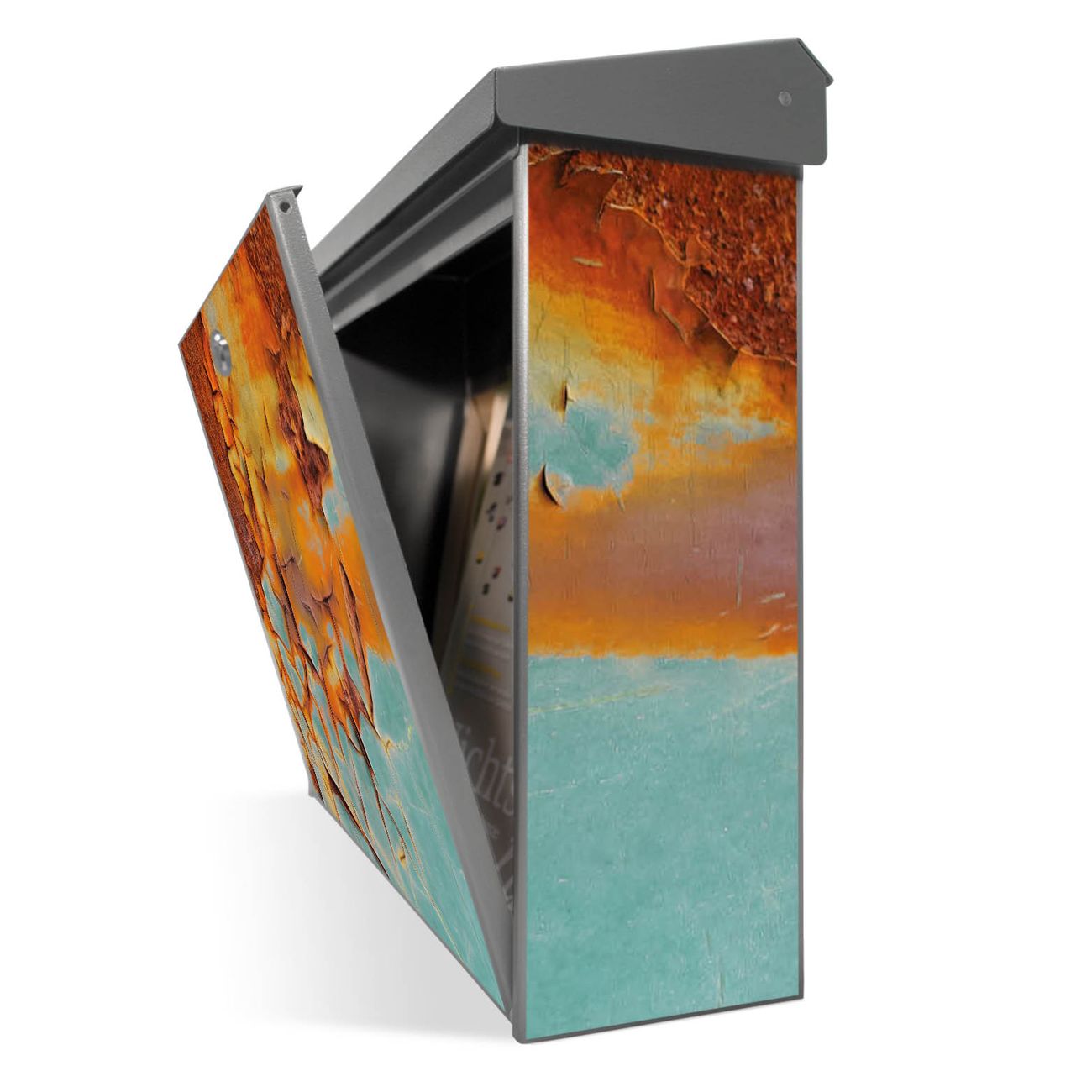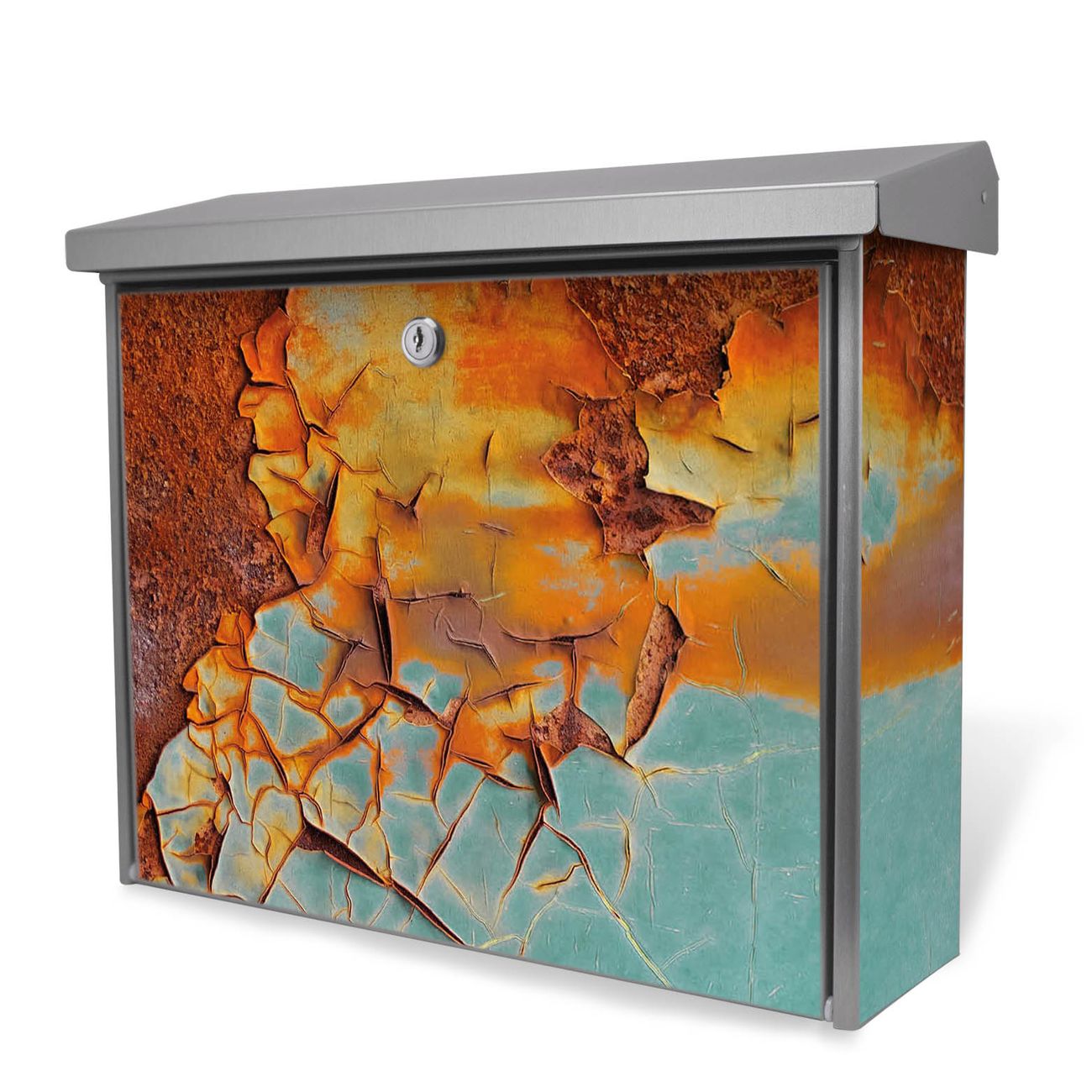 Der Postkasten mit Rost und Blau Motiv hat ein sehr ansprechendes und zeitloses Design. Unsere Motivpalette hält jede Menge Varianten bereit, ob klassisch, modern, verspielt oder witzig - für jeden haben wir das passende Motiv parat. Der Briefkasten ist das Aushängeschild Ihres Hauses.