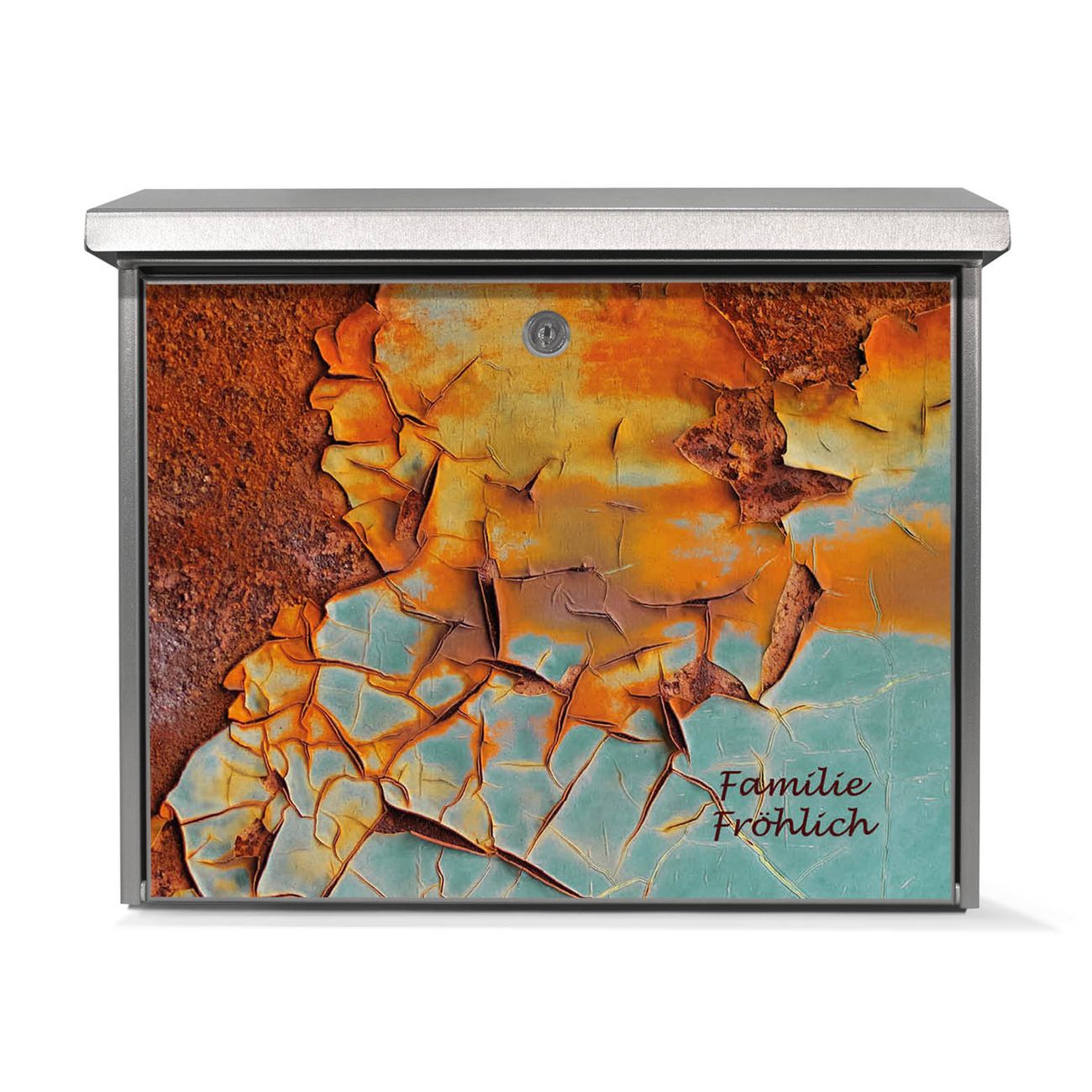 Der Postkasten mit Rost und Blau Motiv hat ein sehr ansprechendes und zeitloses Design. Unsere Motivpalette hält jede Menge Varianten bereit, ob klassisch, modern, verspielt oder witzig - für jeden haben wir das passende Motiv parat. Der Briefkasten ist das Aushängeschild Ihres Hauses.
