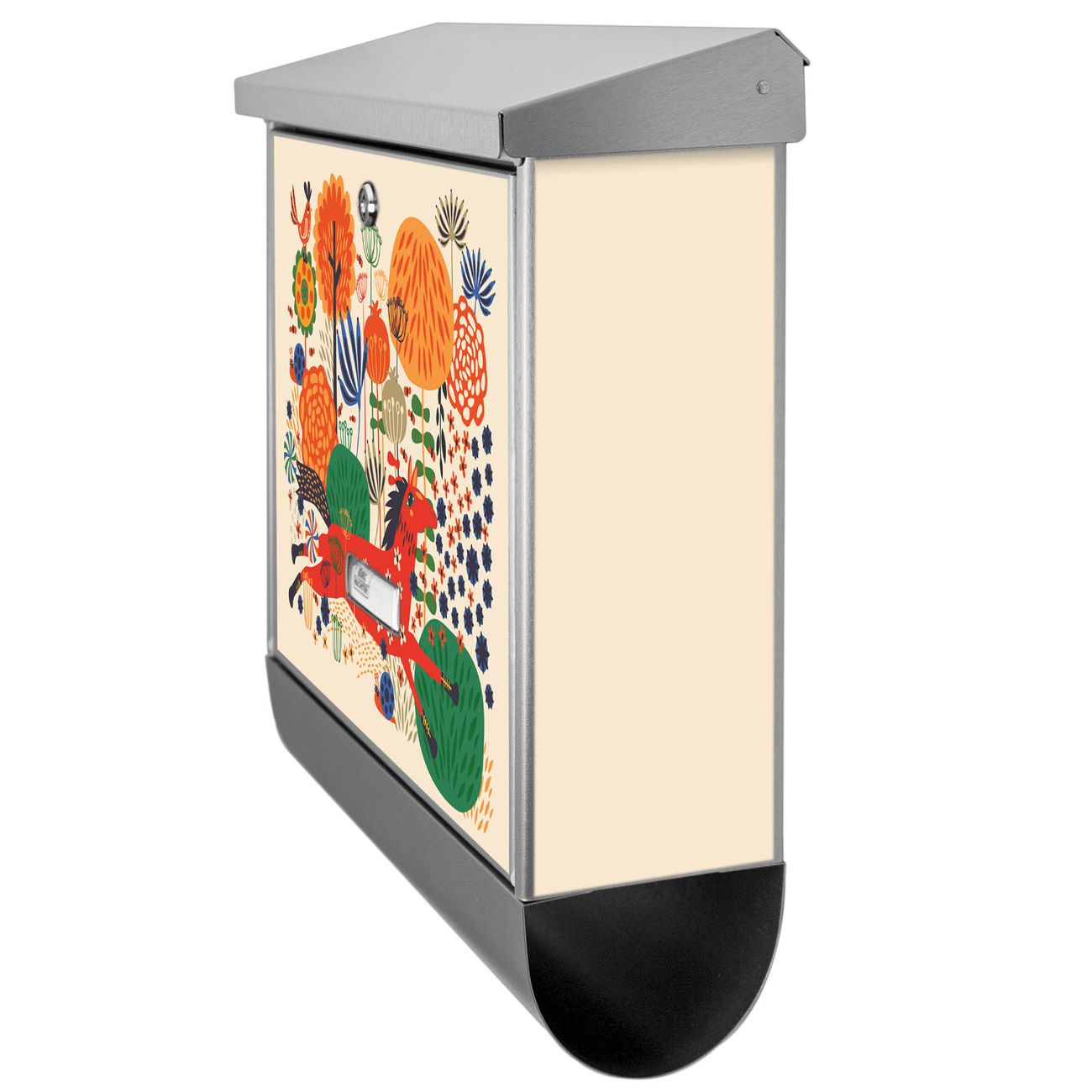 Der Briefkasten besteht aus Edelstahl, einem hochwertigen Material das rostfrei und äußerst unempfindlich gegenüber Witterungseinflüssen ist. Das Motiv besteht aus einer wetter- und UV-festen Folie, die Ihren Briefkasten zusätzlich vor Kratzern schützt. Der Postkasten ist je nach Auswahl 38 x 39 x 12 CM oder 38 x 31,5 x 12 cm (BxHxT) groß. Der Briefeinwurf ist 33,2cm x 3,1cm, Format DIN C4. Der Briefkasten wird mit Montagematerial und zwei Schlüsseln geliefert.