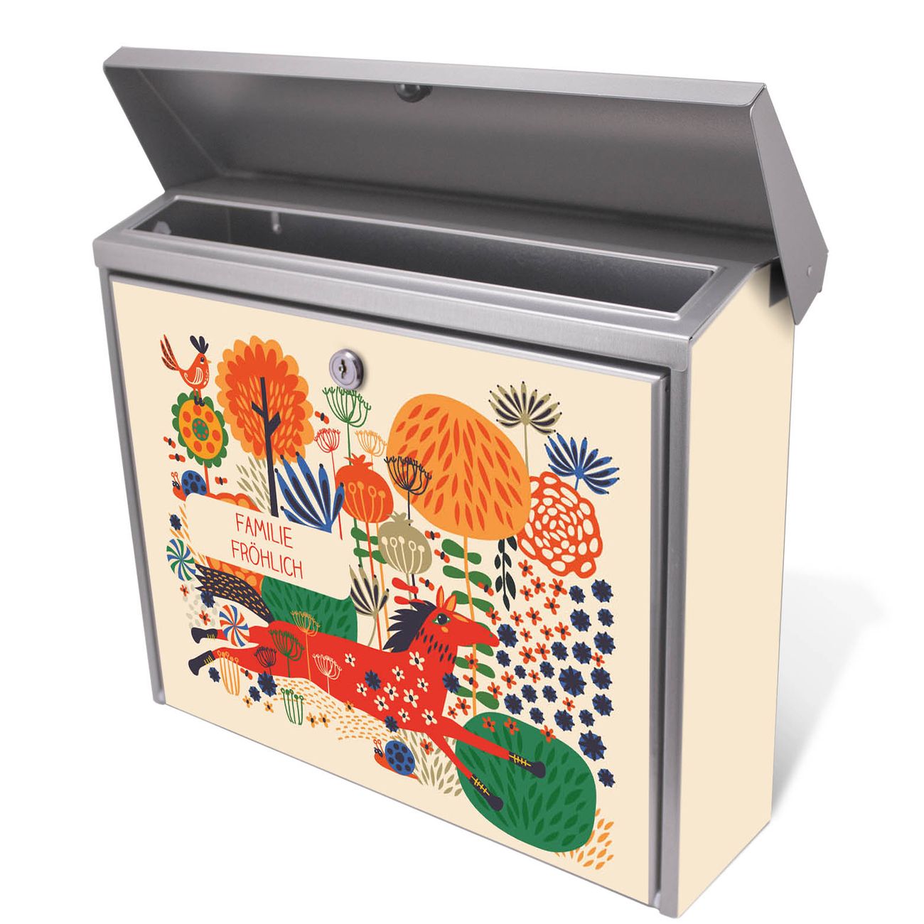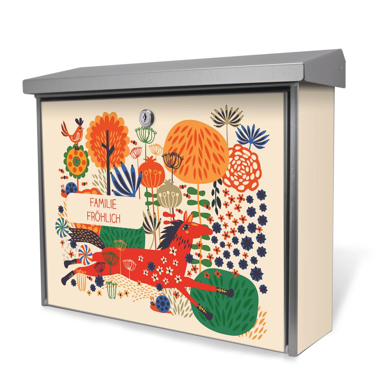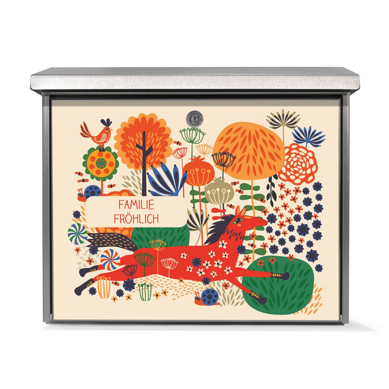 Der Postkasten mit Rotes Pferd Motiv hat ein sehr ansprechendes und zeitloses Design. Unsere Motivpalette hält jede Menge Varianten bereit, ob klassisch, modern, verspielt oder witzig - für jeden haben wir das passende Motiv parat. Der Briefkasten ist das Aushängeschild Ihres Hauses.