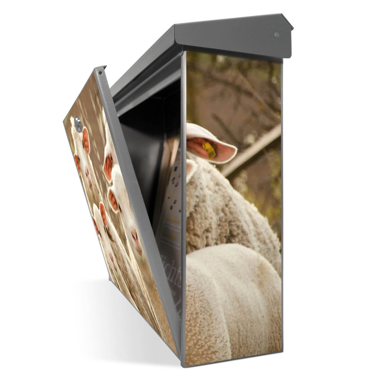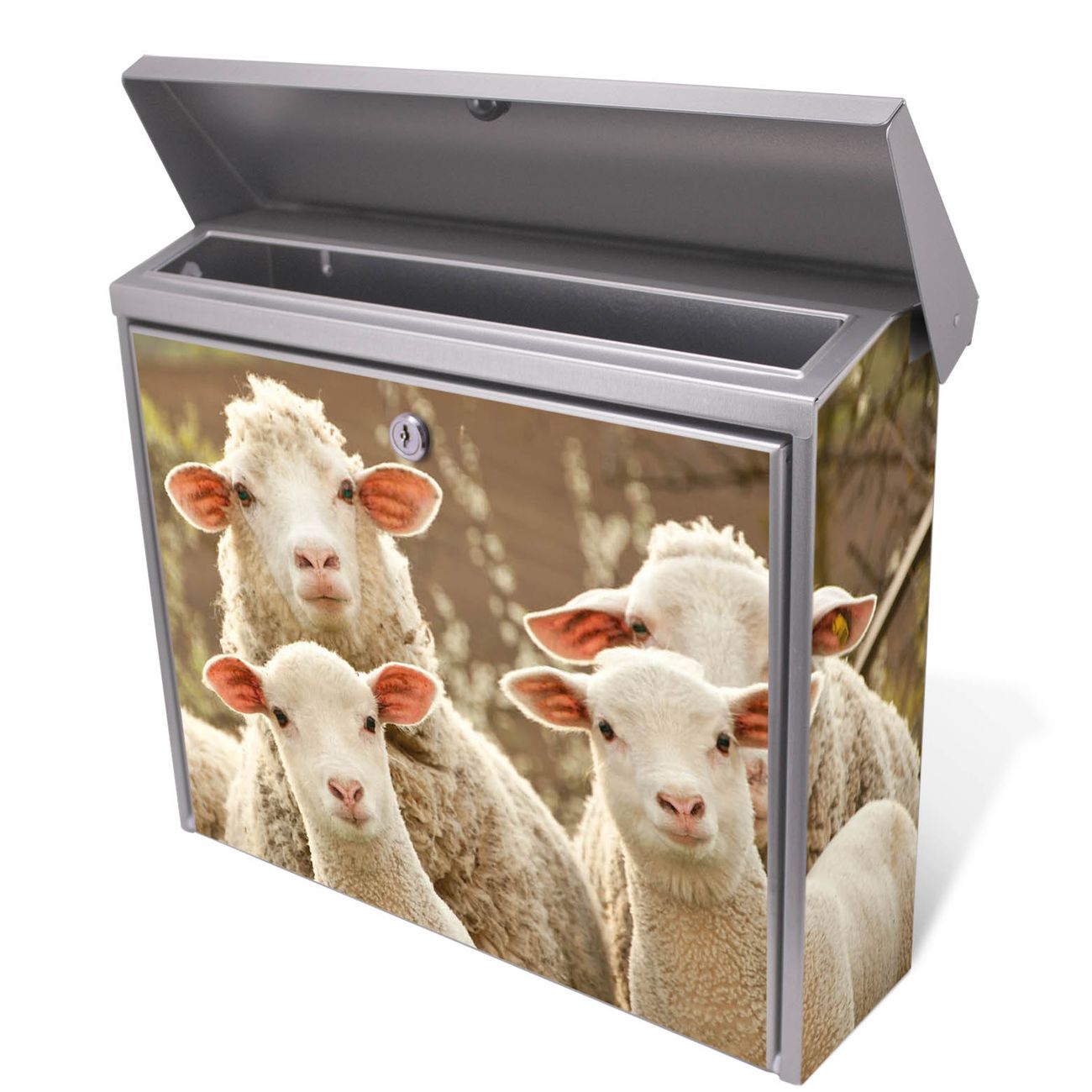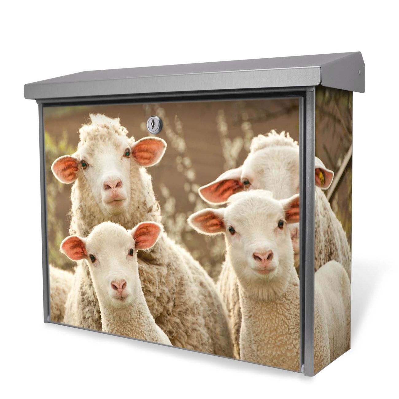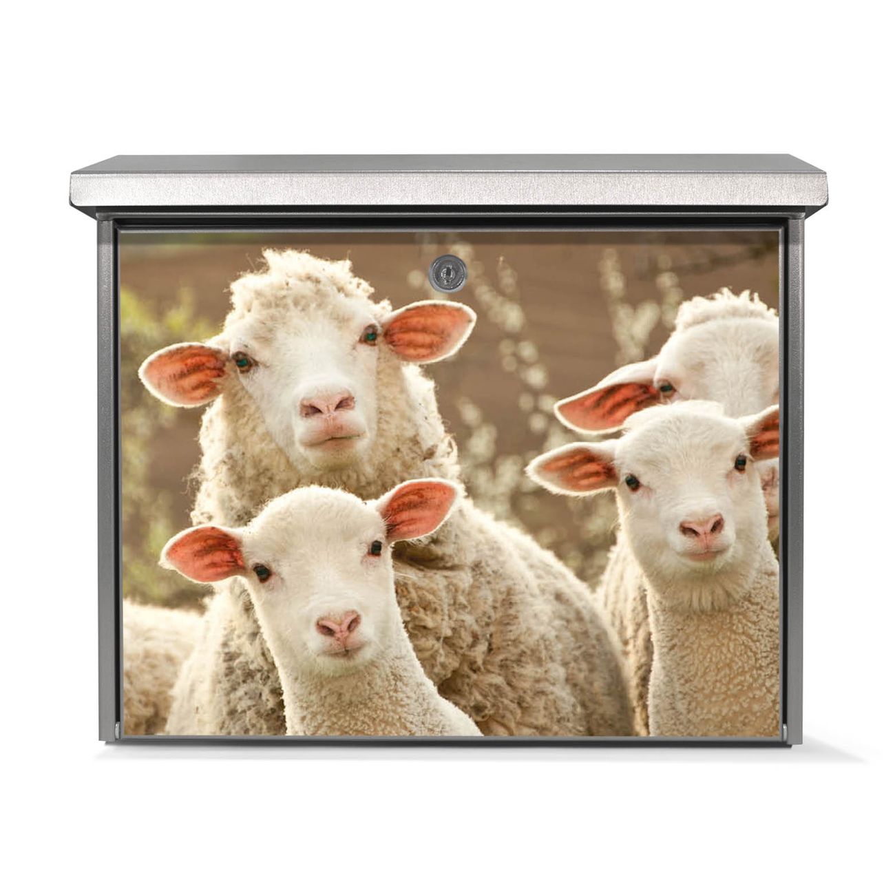 Der Postkasten mit Schaffamilie Motiv hat ein sehr ansprechendes und zeitloses Design. Unsere Motivpalette hält jede Menge Varianten bereit, ob klassisch, modern, verspielt oder witzig - für jeden haben wir das passende Motiv parat. Der Briefkasten ist das Aushängeschild Ihres Hauses.