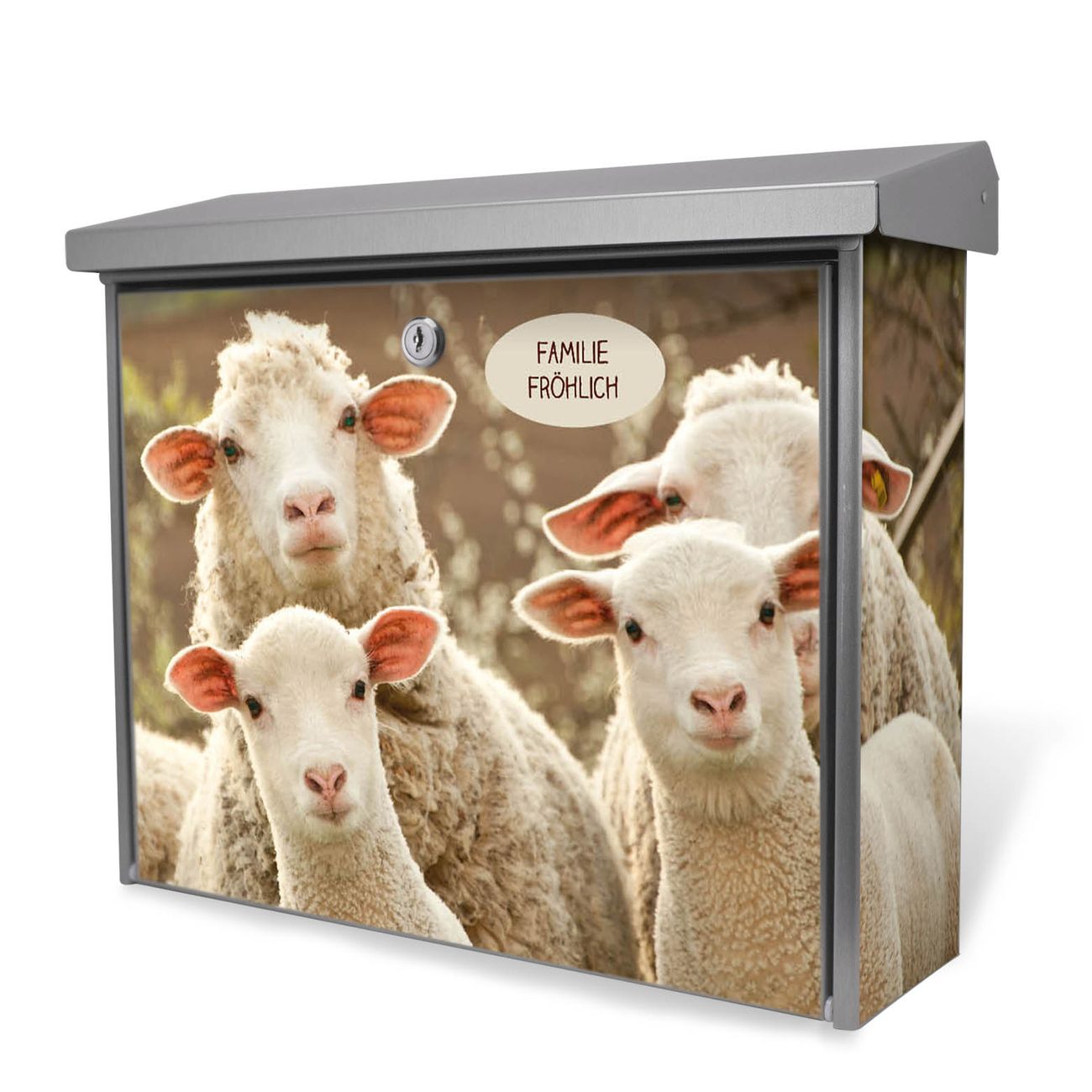 Der Postkasten mit Schaffamilie Motiv hat ein sehr ansprechendes und zeitloses Design. Unsere Motivpalette hält jede Menge Varianten bereit, ob klassisch, modern, verspielt oder witzig - für jeden haben wir das passende Motiv parat. Der Briefkasten ist das Aushängeschild Ihres Hauses.