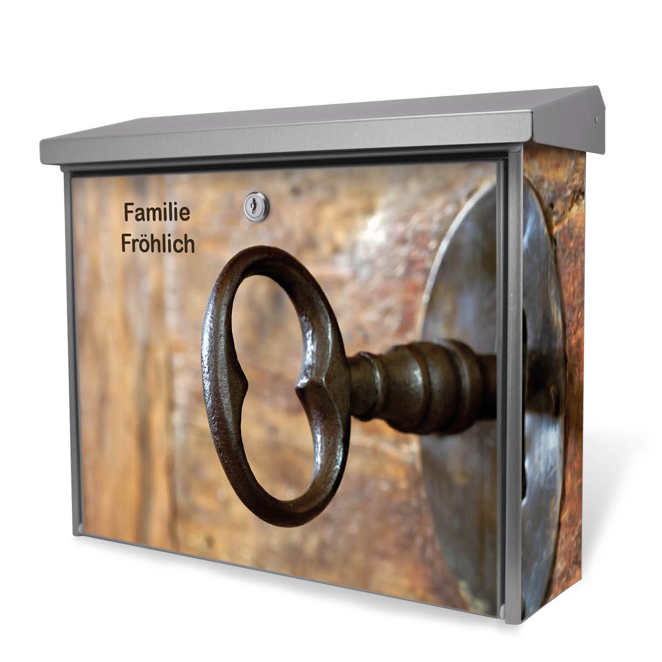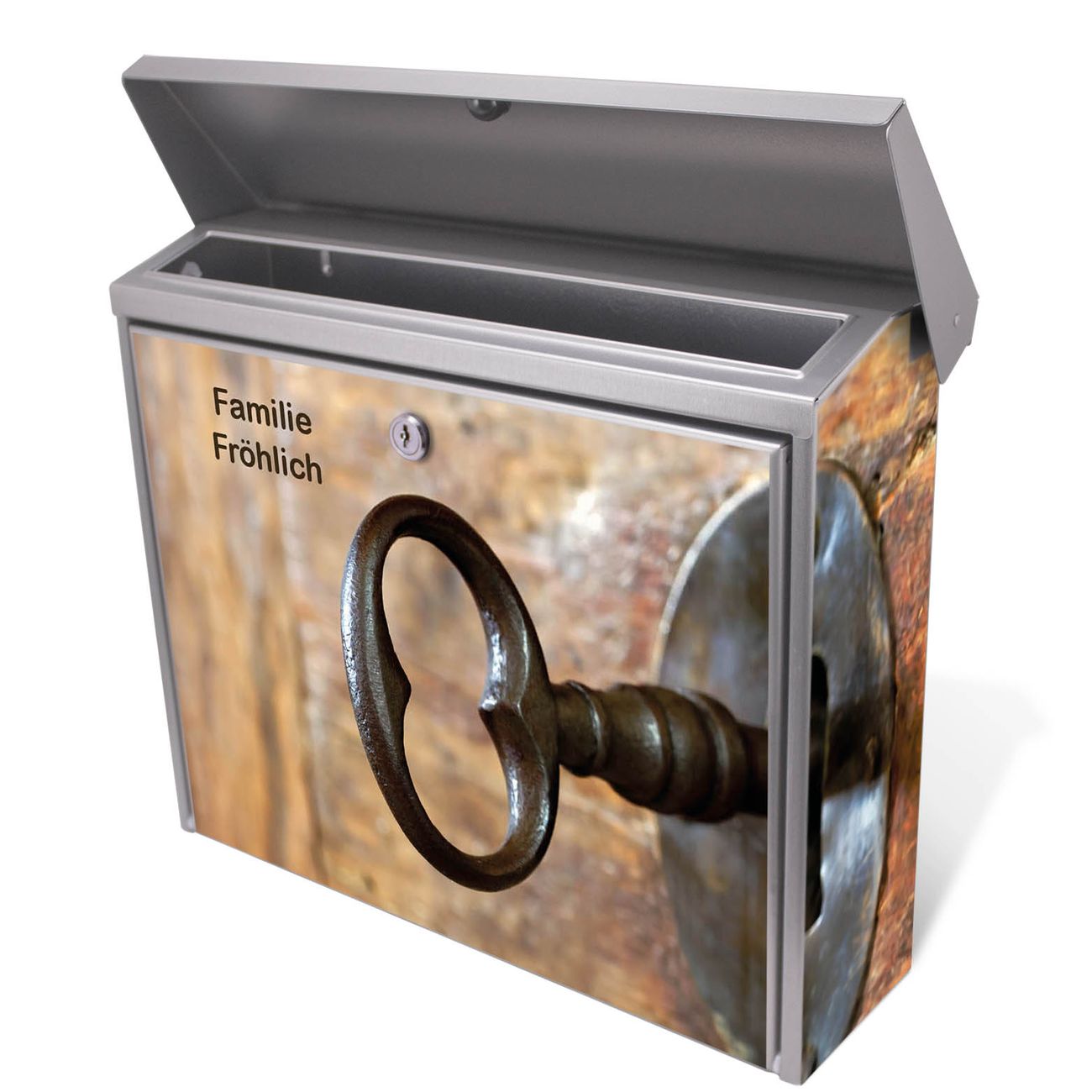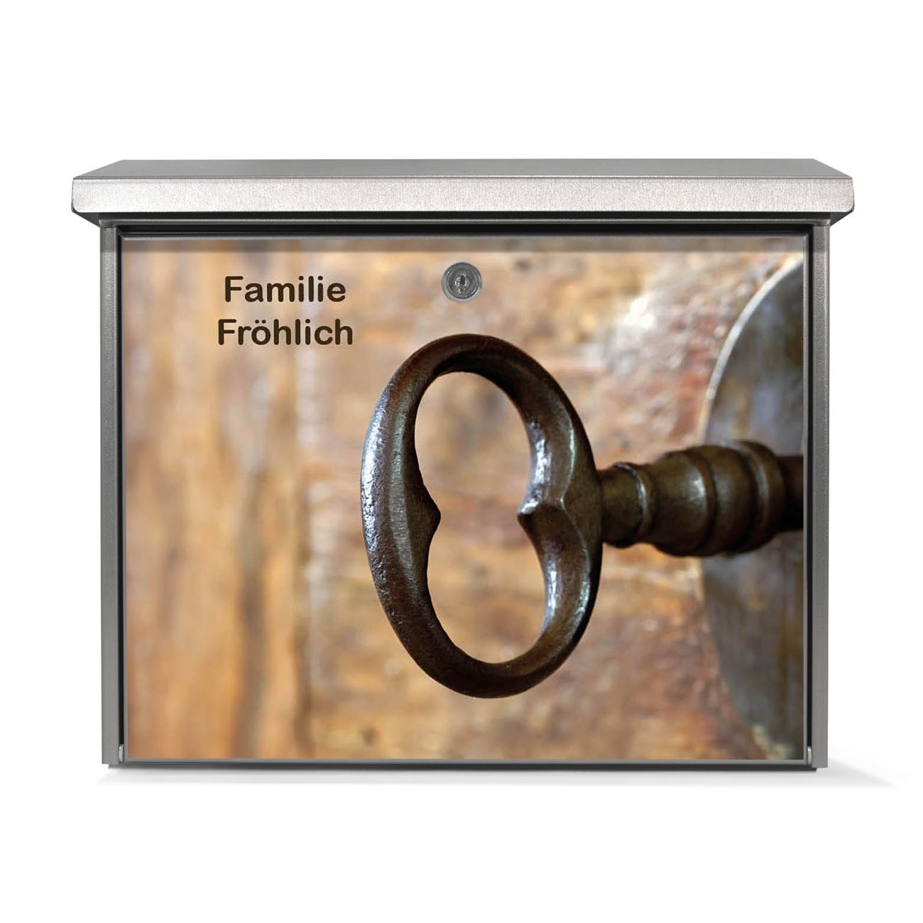 Der Postkasten mit Schlüssel Motiv hat ein sehr ansprechendes und zeitloses Design. Unsere Motivpalette hält jede Menge Varianten bereit, ob klassisch, modern, verspielt oder witzig - für jeden haben wir das passende Motiv parat. Der Briefkasten ist das Aushängeschild Ihres Hauses.