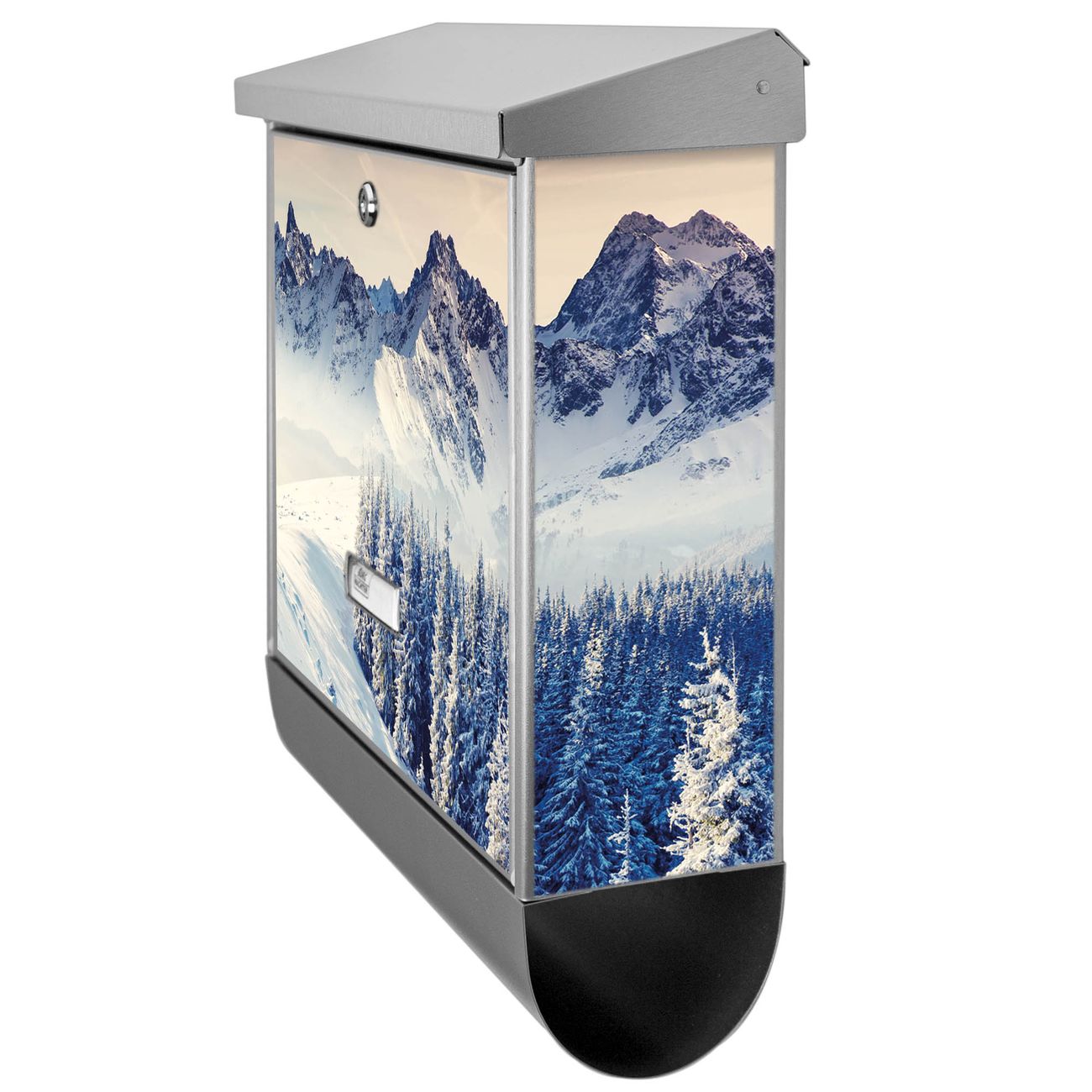 Der Schneebedeckte Berge Motivbriefkasten hat ein sehr ansprechendes und zeitloses Design. Unsere Motivpalette hält jede Menge Varianten bereit, ob klassisch, modern, verspielt oder witzig - für jeden haben wir das passende Motiv parat. Der Briefkasten mit Zeitungsfach ist Ihr Aushängeschild, heben Sie Sich ab ohne auf Funktionalität zu verzichten.