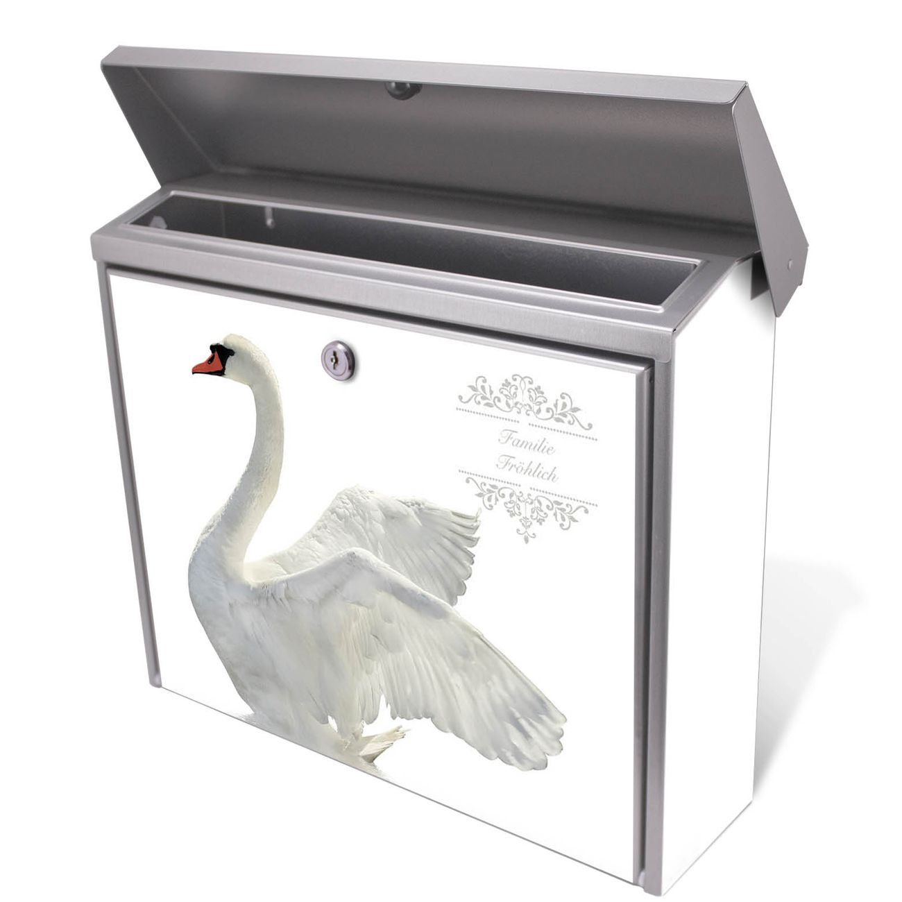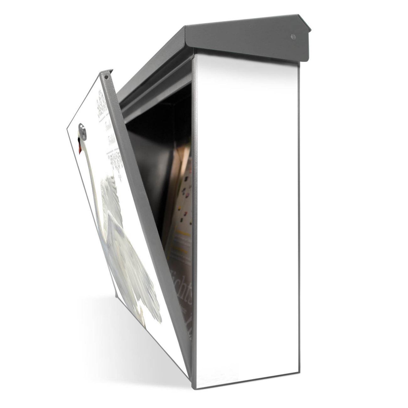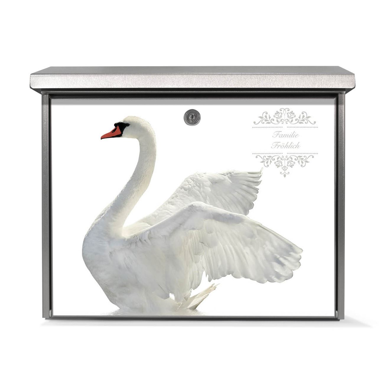 Der Postkasten mit Schwan Motiv hat ein sehr ansprechendes und zeitloses Design. Unsere Motivpalette hält jede Menge Varianten bereit, ob klassisch, modern, verspielt oder witzig - für jeden haben wir das passende Motiv parat. Der Briefkasten ist das Aushängeschild Ihres Hauses.