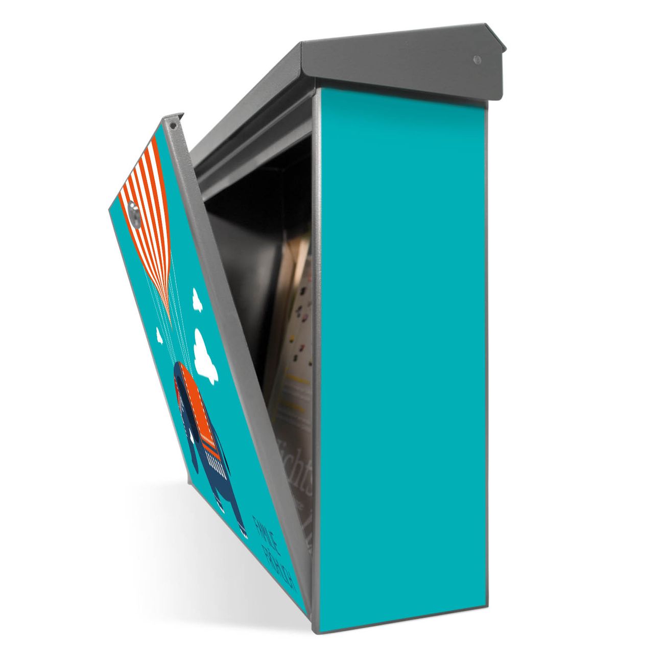 Der Postkasten mit Schwerelos Motiv hat ein sehr ansprechendes und zeitloses Design. Unsere Motivpalette hält jede Menge Varianten bereit, ob klassisch, modern, verspielt oder witzig - für jeden haben wir das passende Motiv parat. Der Briefkasten ist das Aushängeschild Ihres Hauses.