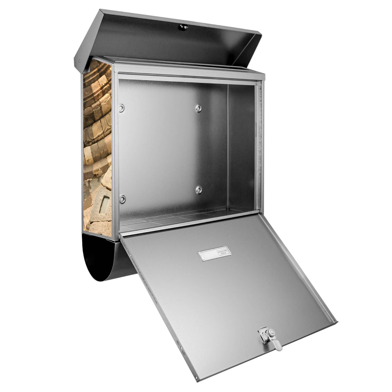 Der Briefkasten besteht aus Edelstahl, einem hochwertigen Material das rostfrei und äußerst unempfindlich gegenüber Witterungseinflüssen ist. Das Motiv besteht aus einer wetter- und UV-festen Folie, die Ihren Briefkasten zusätzlich vor Kratzern schützt. Der Postkasten ist je nach Auswahl 38 x 39 x 12 CM oder 38 x 31,5 x 12 cm (BxHxT) groß. Der Briefeinwurf ist 33,2cm x 3,1cm, Format DIN C4. Der Briefkasten wird mit Montagematerial und zwei Schlüsseln geliefert.