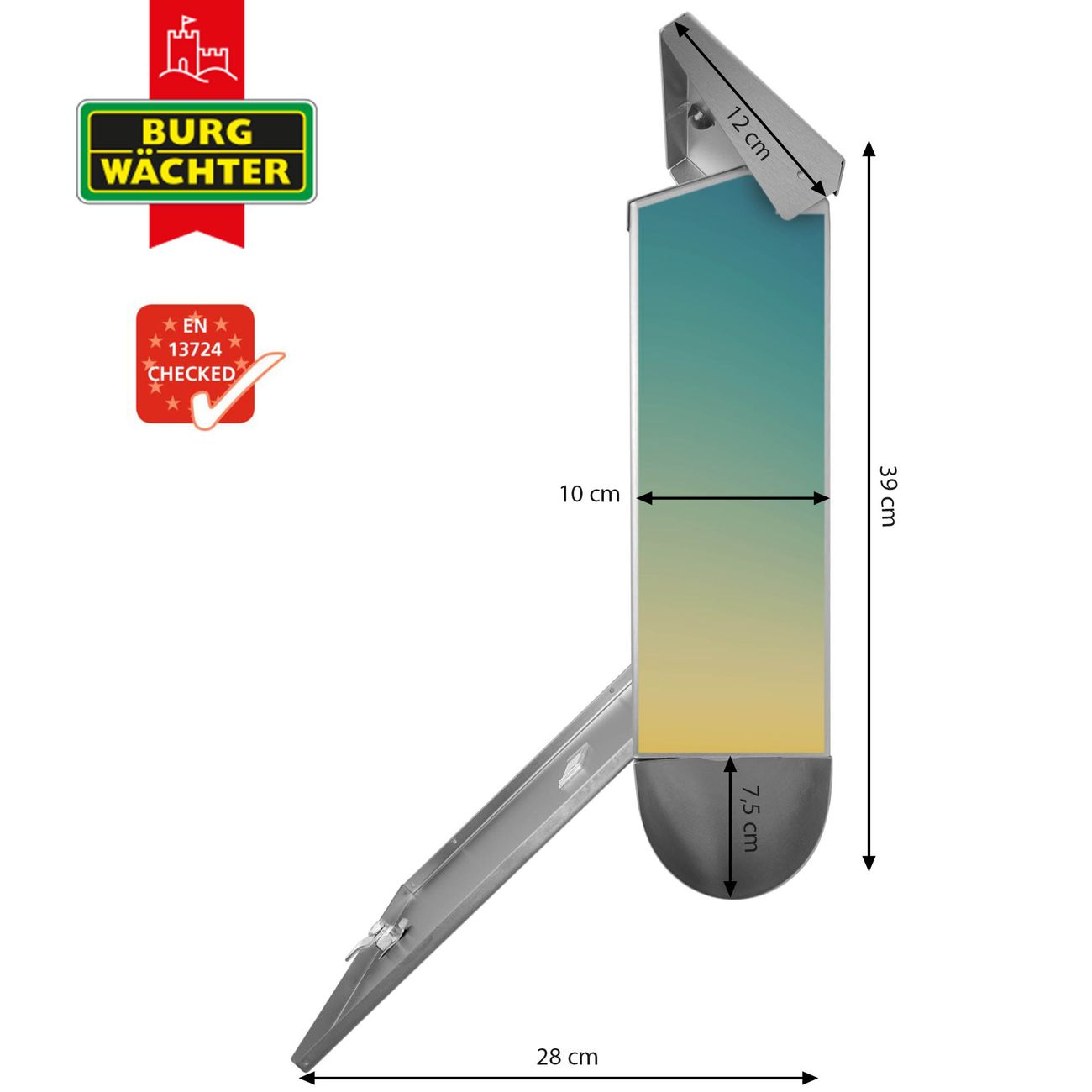 Der BURG-WÄCHTER Edelstahl Briefkasten mit Motiv Sommer Lovin und Zeitungsrolle bietet Ihnen mit seinem Fassungsvermögen genügend Platz auch für große A4 Sendungen und Zeitschriften. Das integrierte Regendach schützt Ihre Post vor dem Eindringen von Regen.