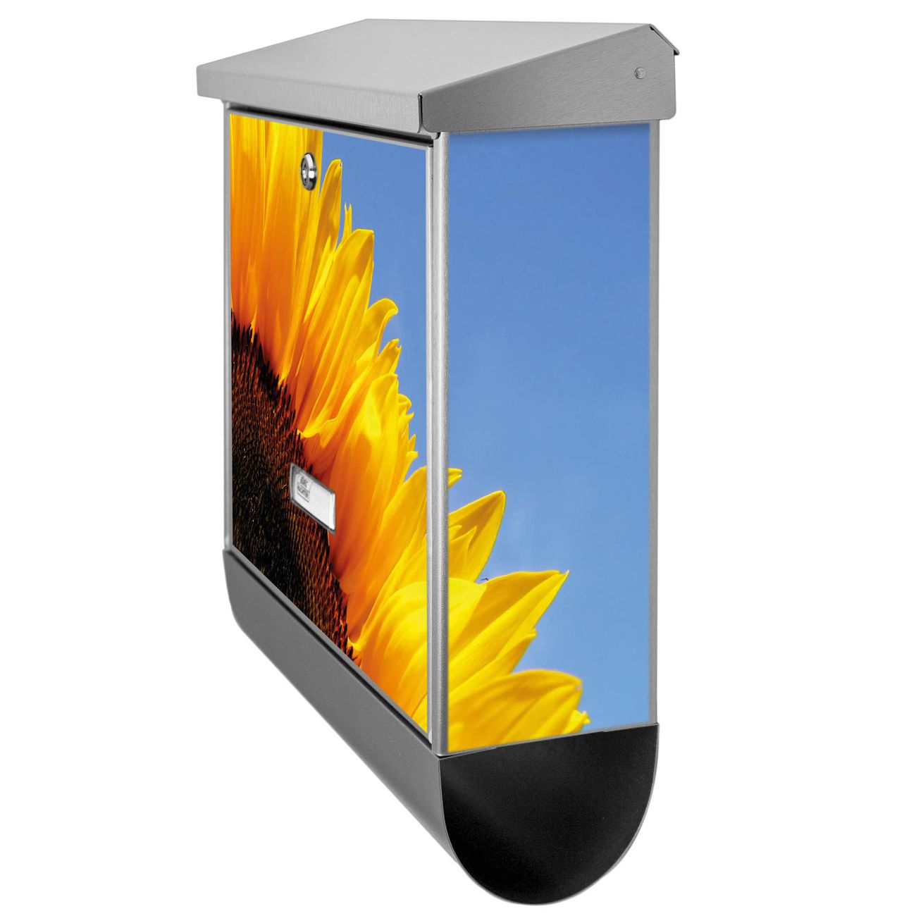 Der Sonnenblume Motivbriefkasten hat ein sehr ansprechendes und zeitloses Design. Unsere Motivpalette hält jede Menge Varianten bereit, ob klassisch, modern, verspielt oder witzig - für jeden haben wir das passende Motiv parat. Der Briefkasten mit Zeitungsfach ist Ihr Aushängeschild, heben Sie Sich ab ohne auf Funktionalität zu verzichten.