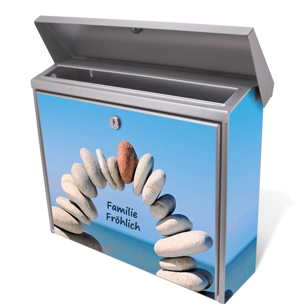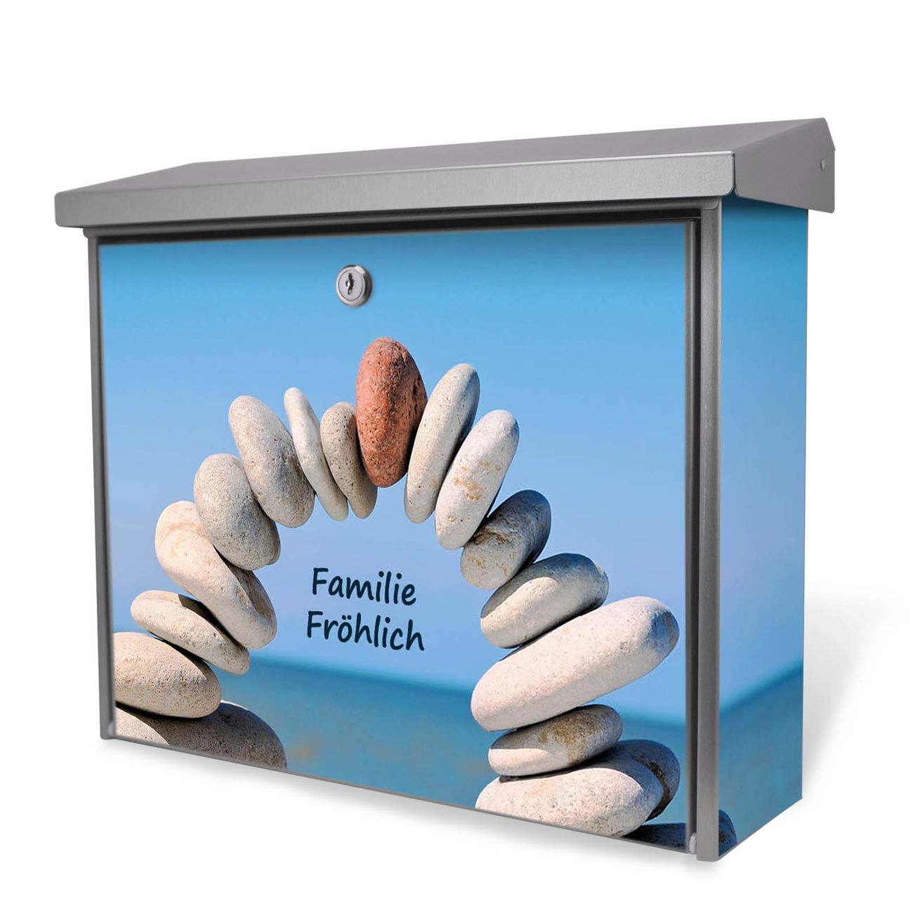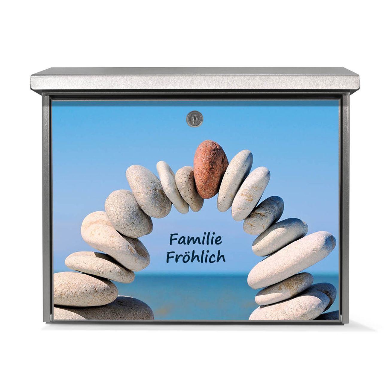 Der Postkasten mit Steine&Meer Motiv hat ein sehr ansprechendes und zeitloses Design. Unsere Motivpalette hält jede Menge Varianten bereit, ob klassisch, modern, verspielt oder witzig - für jeden haben wir das passende Motiv parat. Der Briefkasten ist das Aushängeschild Ihres Hauses.